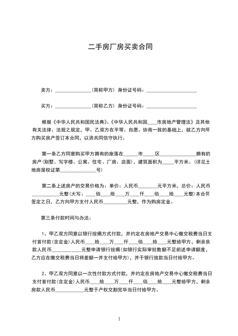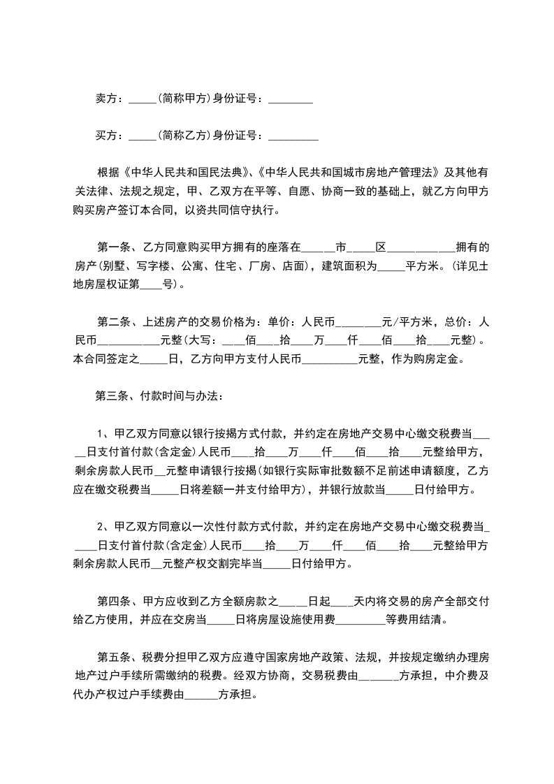 买方:_______________(简称乙方) 身份证号码:_____________________