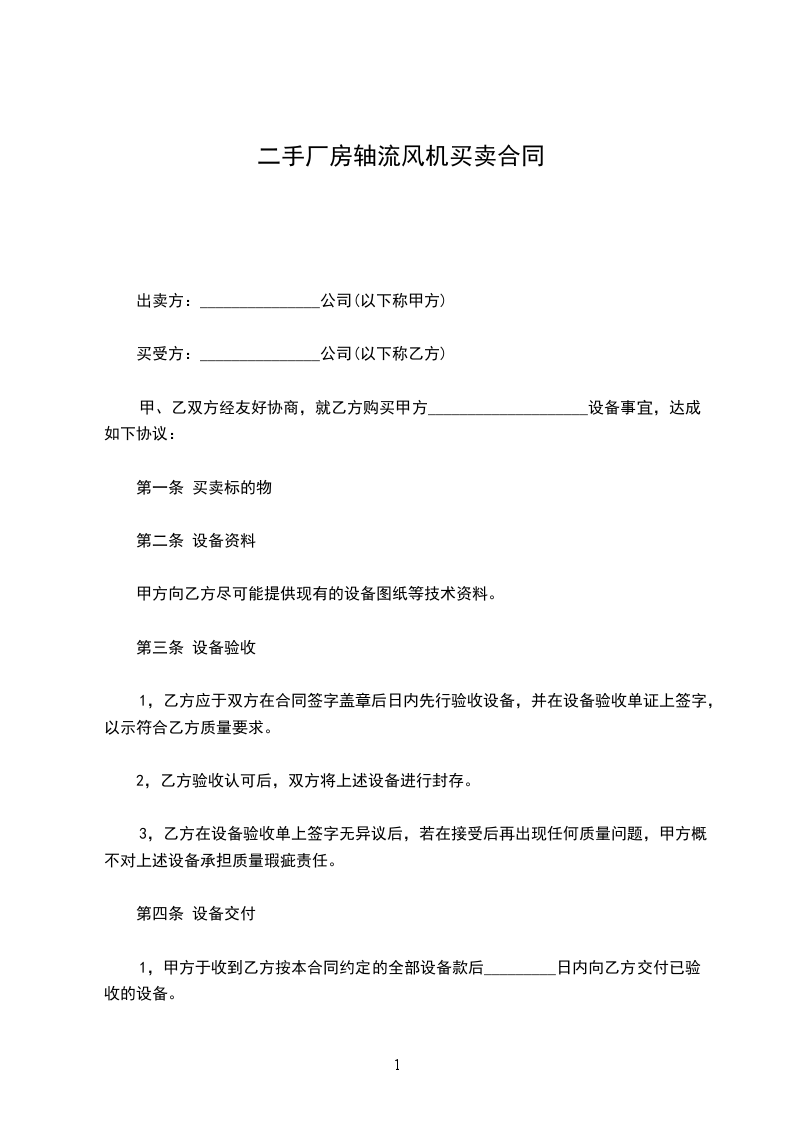 出卖方(甲方)_________________ 购买方(乙方)__________________