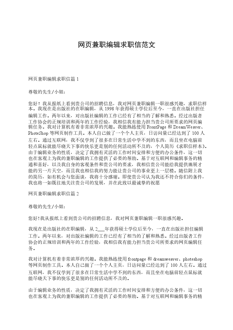 1.兼职编辑根据自己的专业特点和行业背景,通过报纸、电视及网络等媒体,收集没有被_________分类搜索收集的网站或内容丰富的新链接,并加入到_________的分类搜索数据库中;
