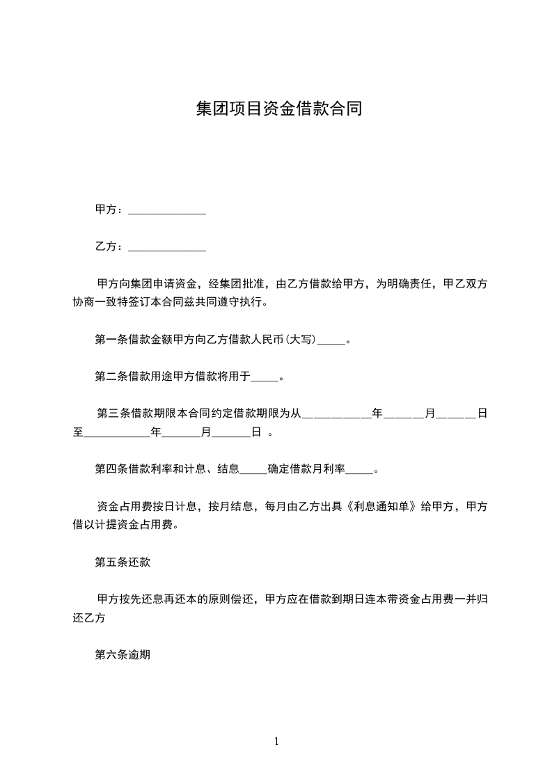 甲方向集团申请资金,经集团批准,由乙方借款给甲方,为明确责任,甲乙双方协商一致特签订本合同兹共同遵守执行。