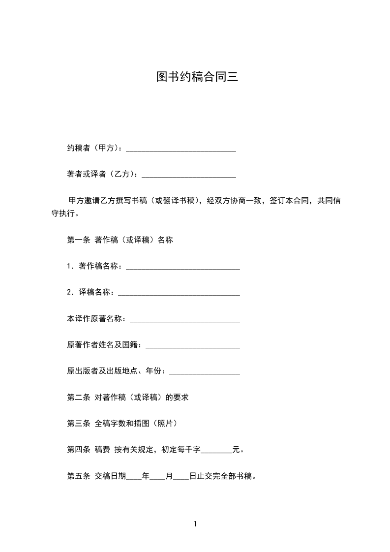 第五条 交稿日期____年____月____日止交完全部书稿。