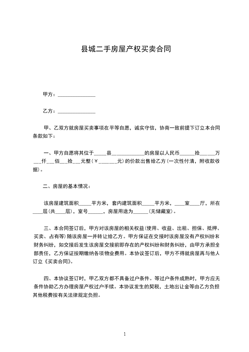 一、甲方房屋(如有共有权人,甲方已经取得了共有权人对转让该房屋的一致同意)坐落于____________建筑面积____________平方米,房屋用途为________________。