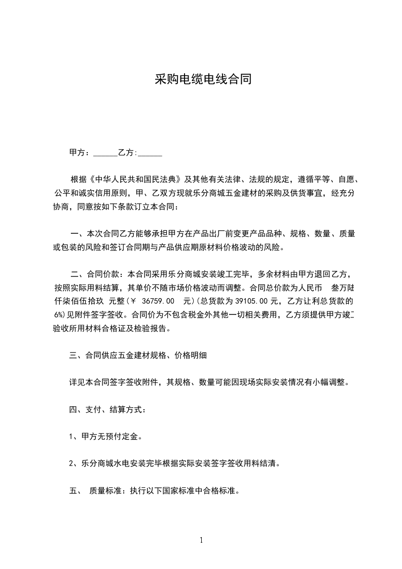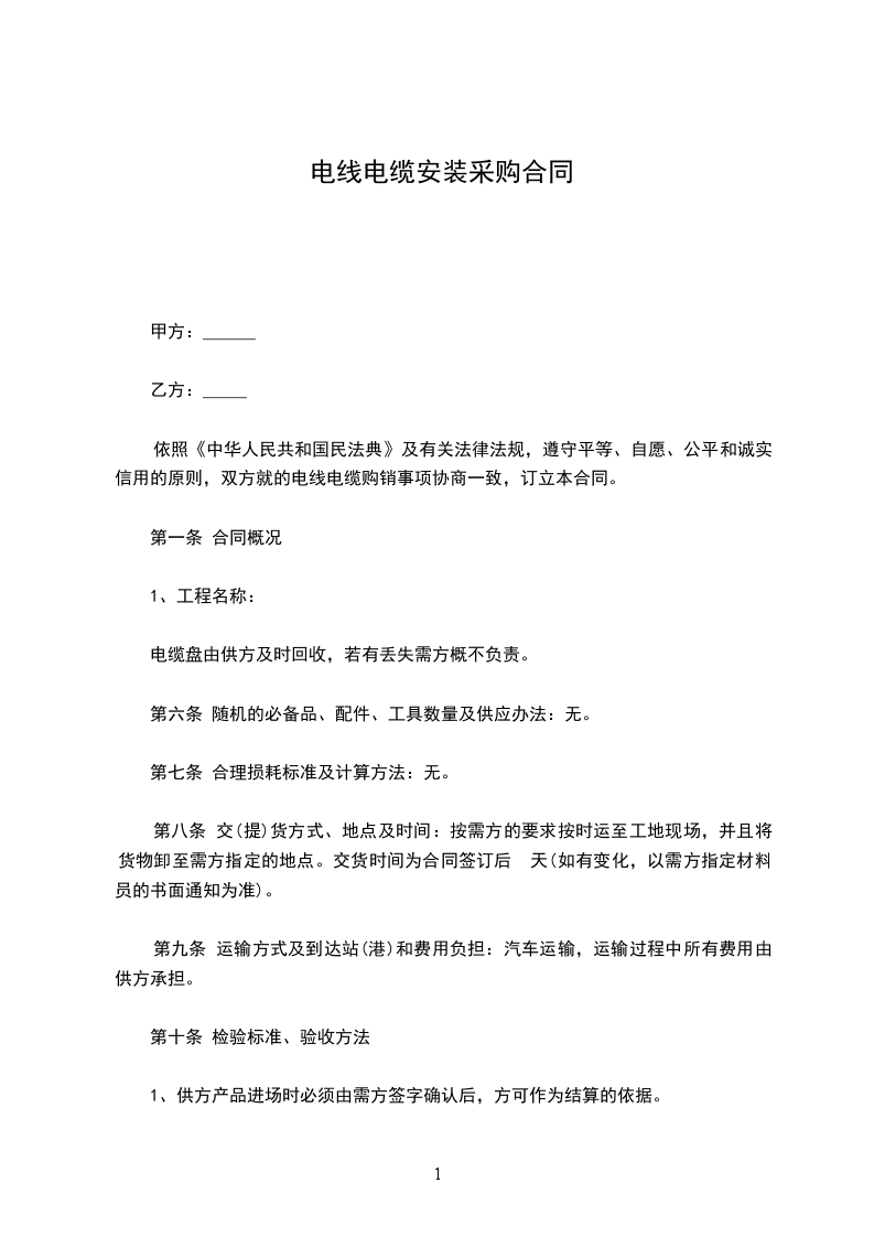 依照《中华人民共和国民法典》及有关法律法规,遵守平等、自愿、公平和诚实信用的原则,双方就的电线电缆购销事项协商一致,订立本合同。