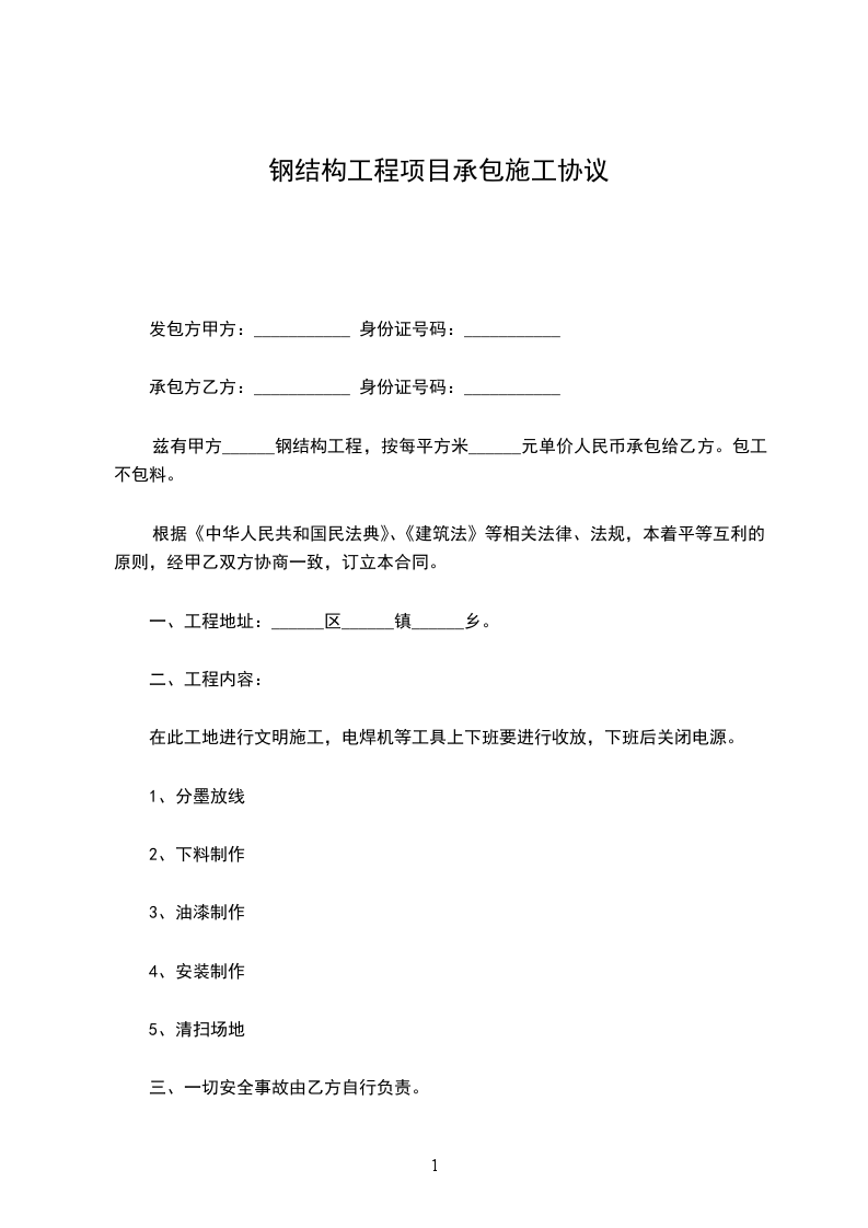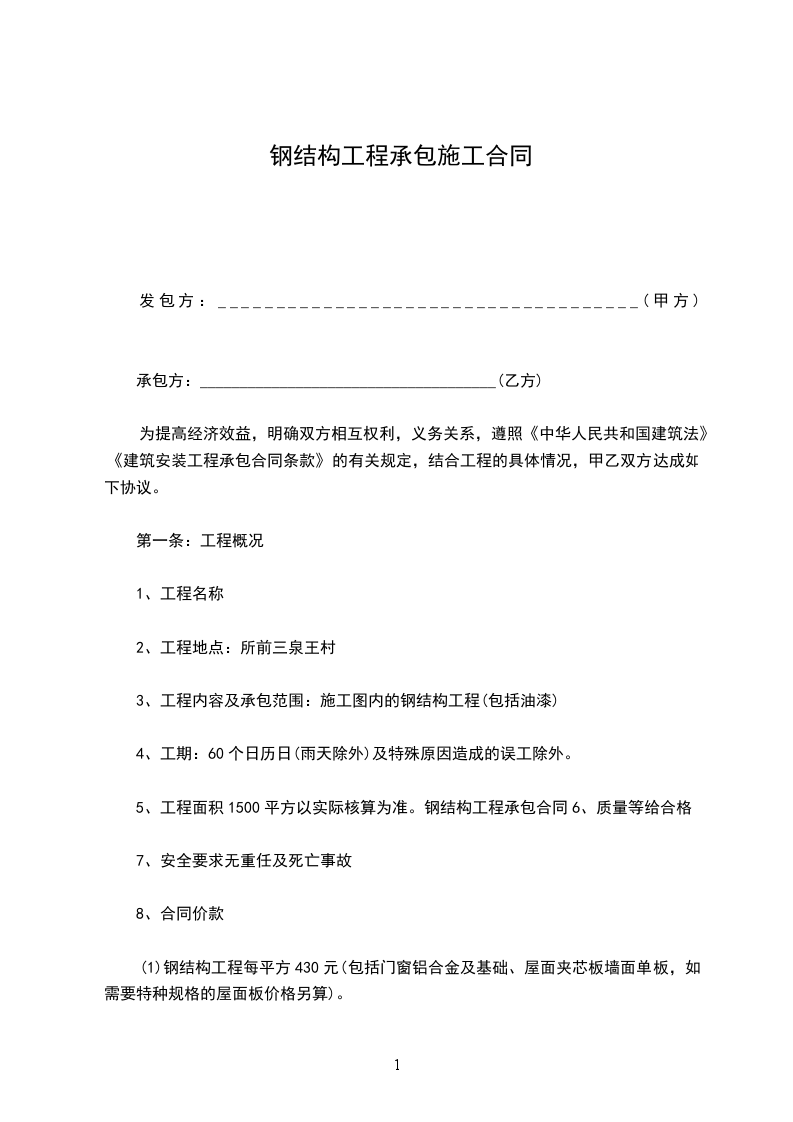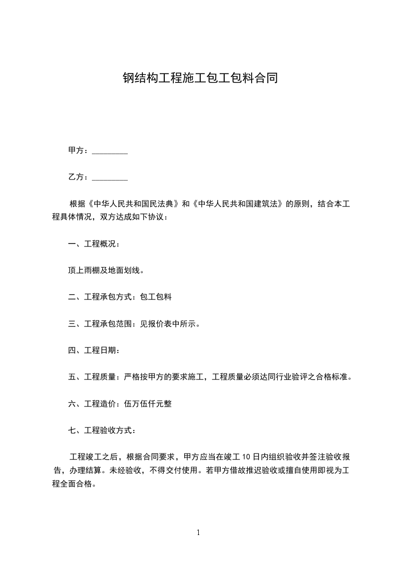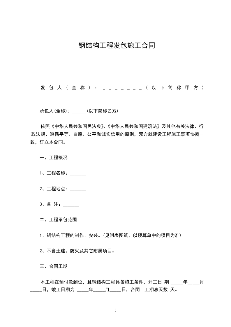 本工程在预付款到位,且钢结构工程具备施工条件,开工日 期 _____年_____月_____日,竣工日期为 _____年_____月_____日,合同 工期总天数 天。