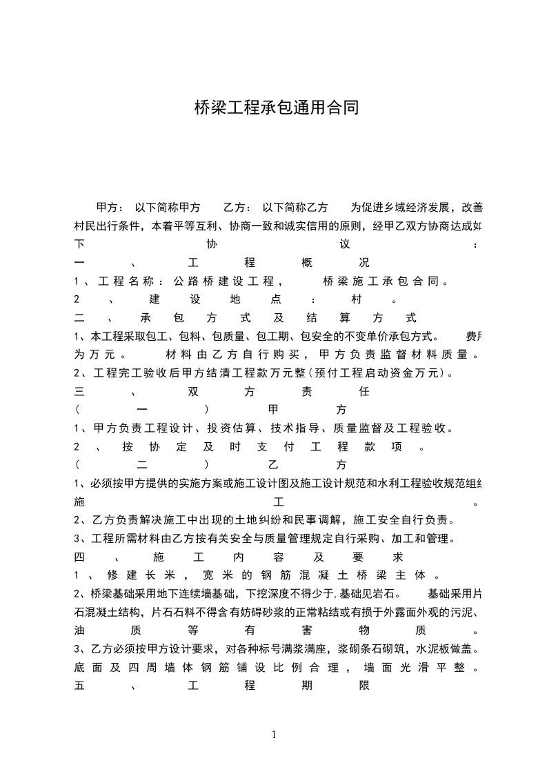1、工程名称:公路桥建设工程, 桥梁施工承包合同。
