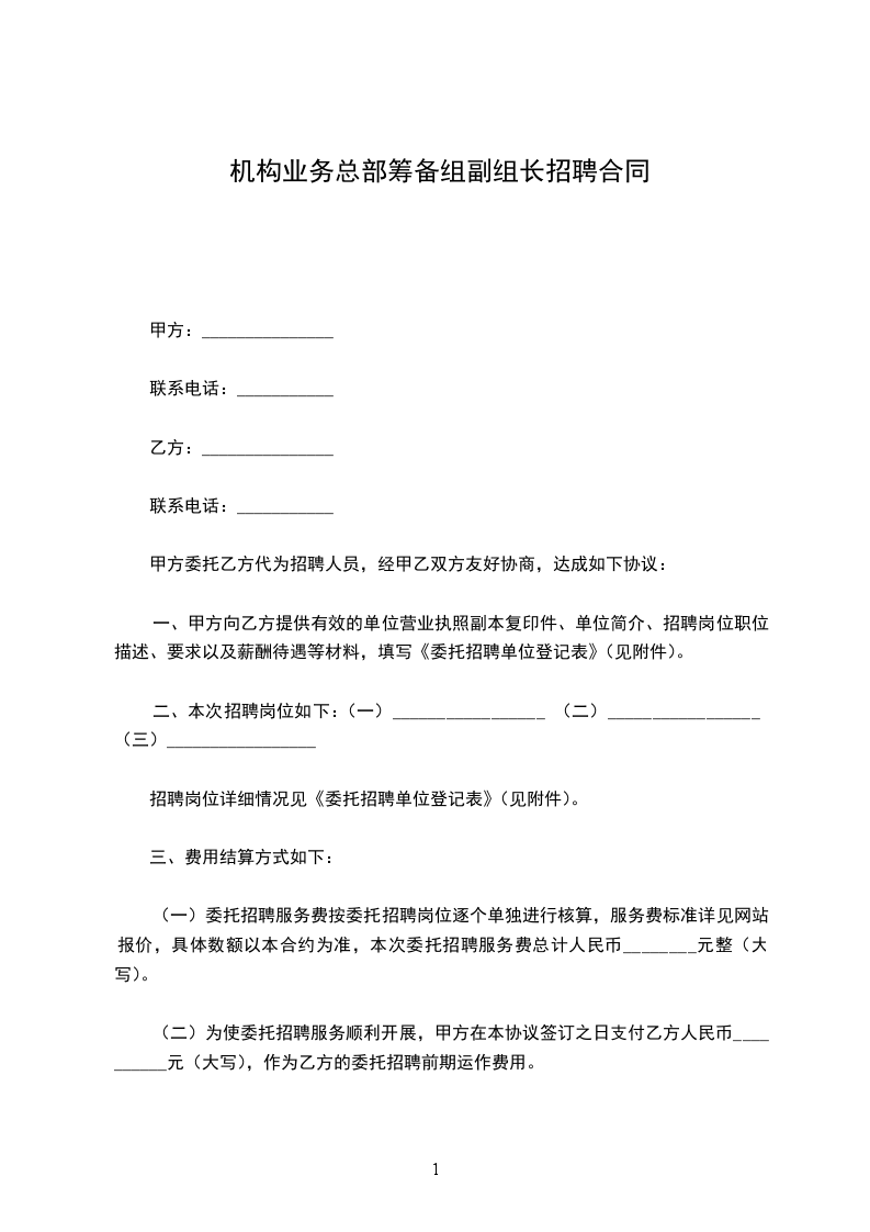 机构业务总部筹备组副组长招聘合同