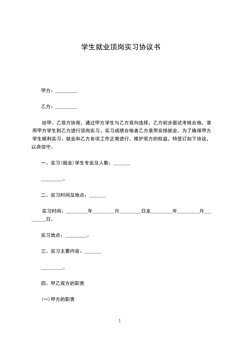 七、本协议一式三份,甲方就业、实习主管部门各一份,乙方一份。