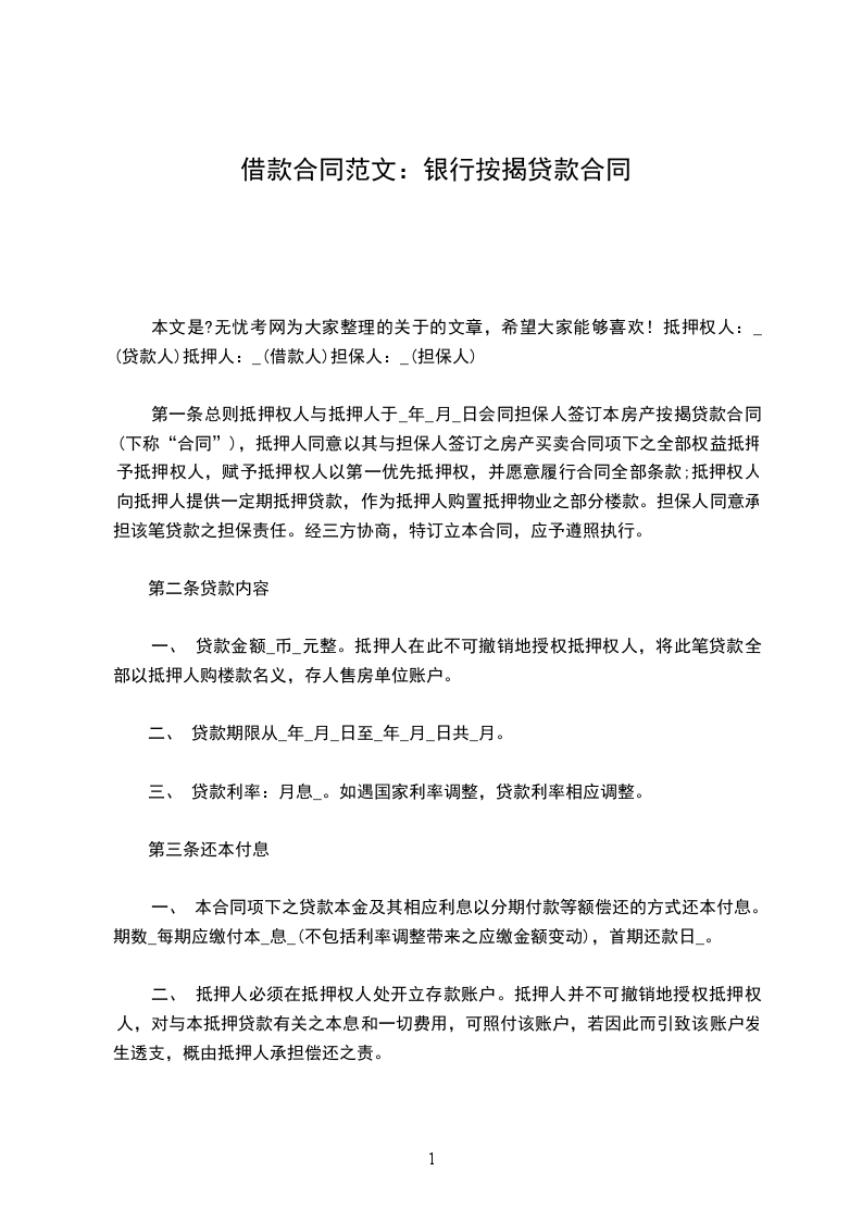 贷款银行(简称乙方):_______