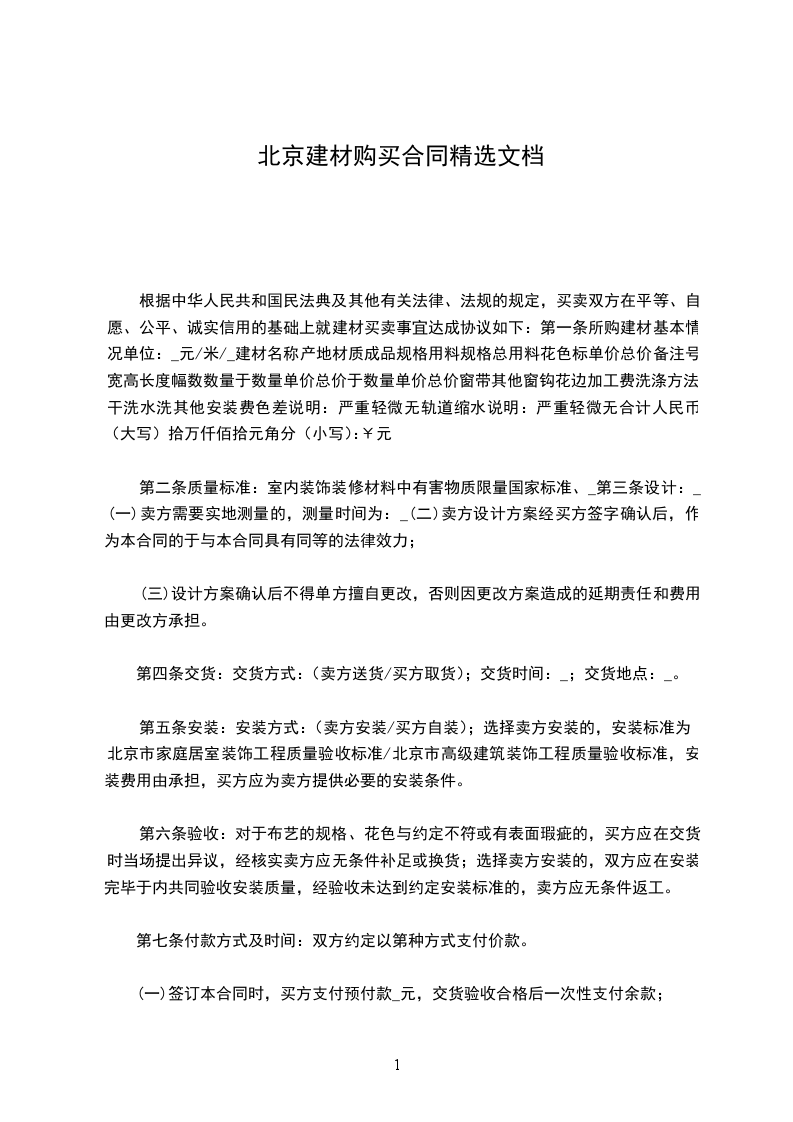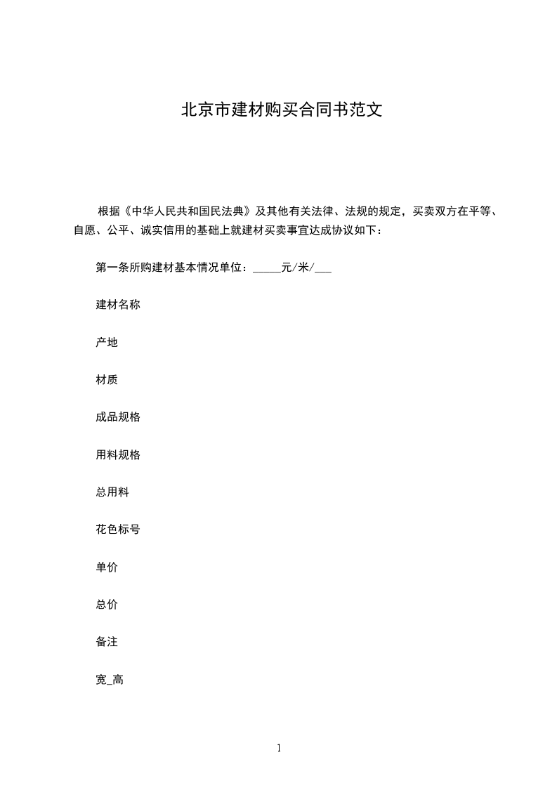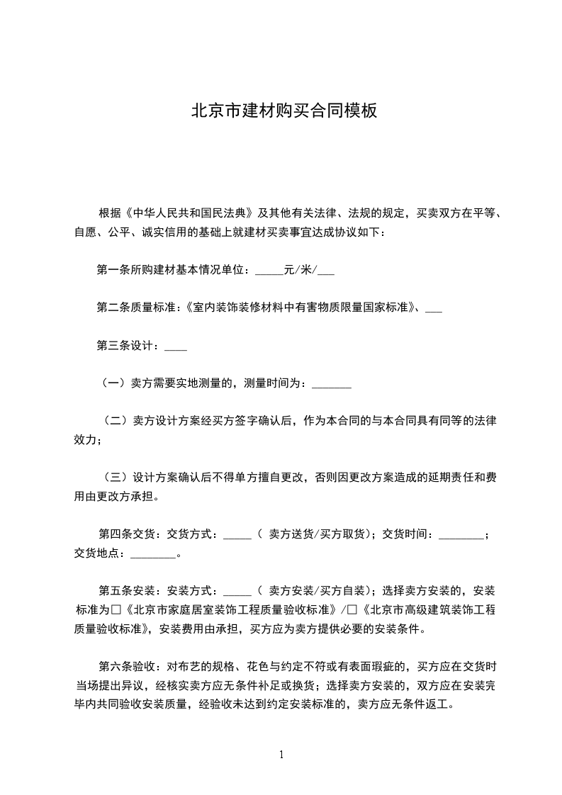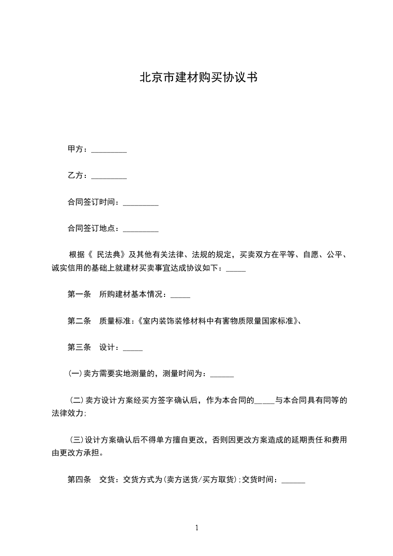 根据《 民法典》及其他有关法律、法规的规定,买卖双方在平等、自愿、公平、诚实信用的基础上就建材买卖事宜达成协议如下:_______