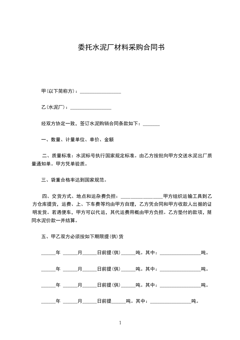 经双方协定一致,签订水泥购销合同条款如下:_______