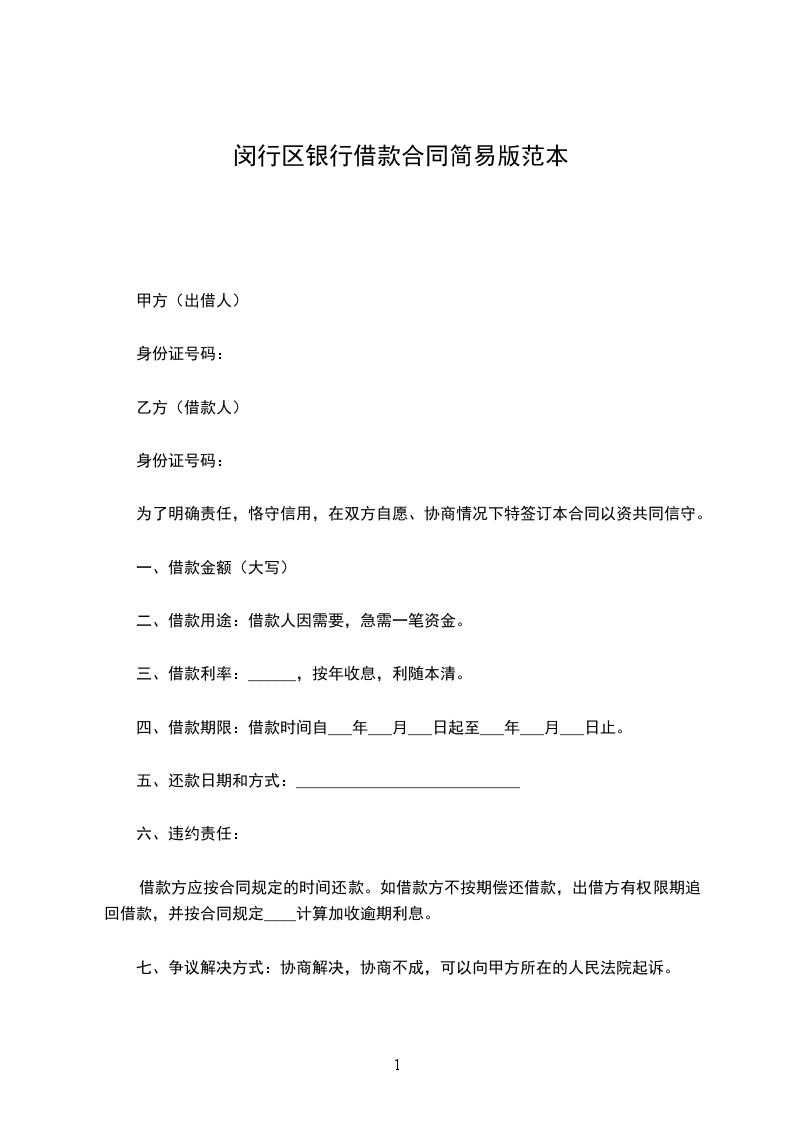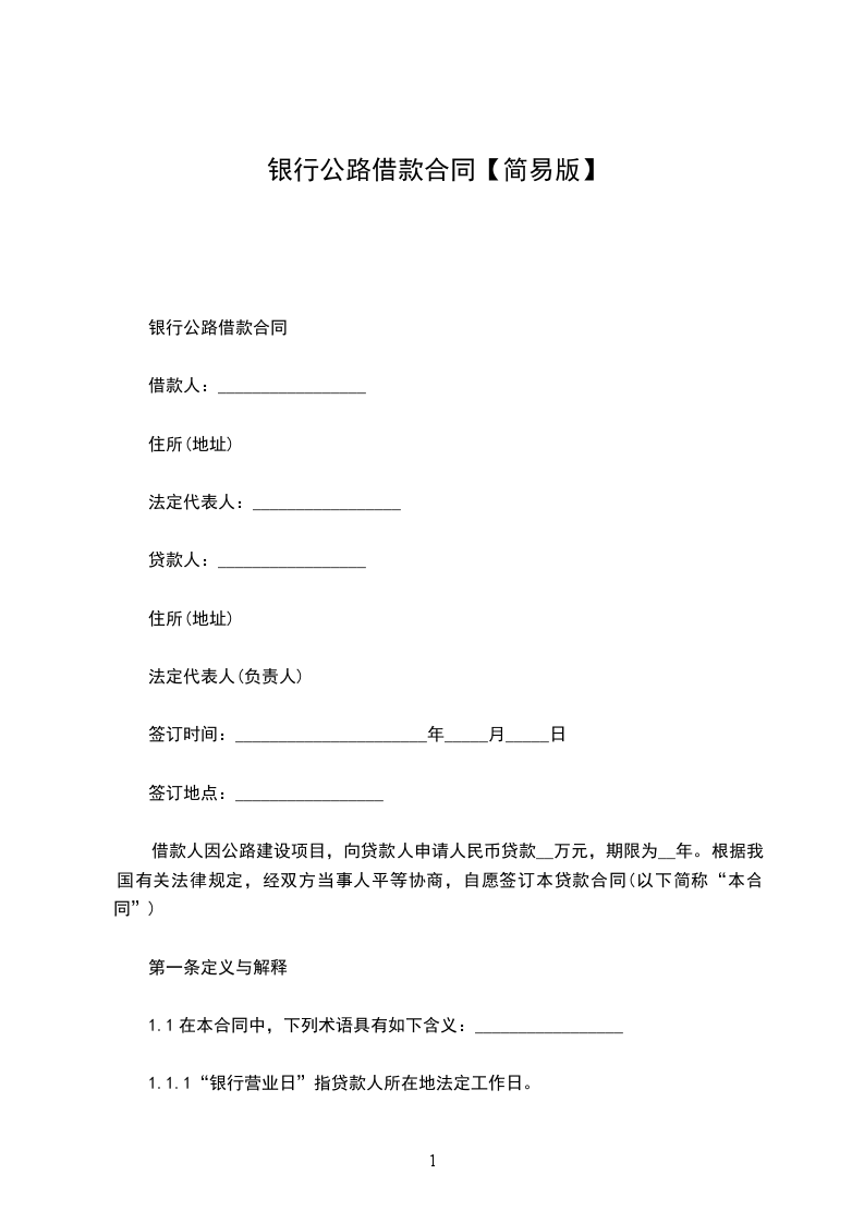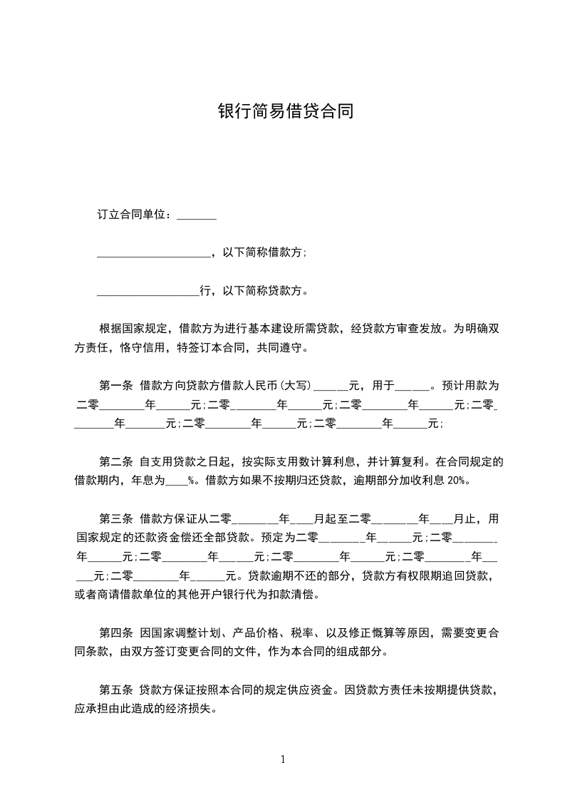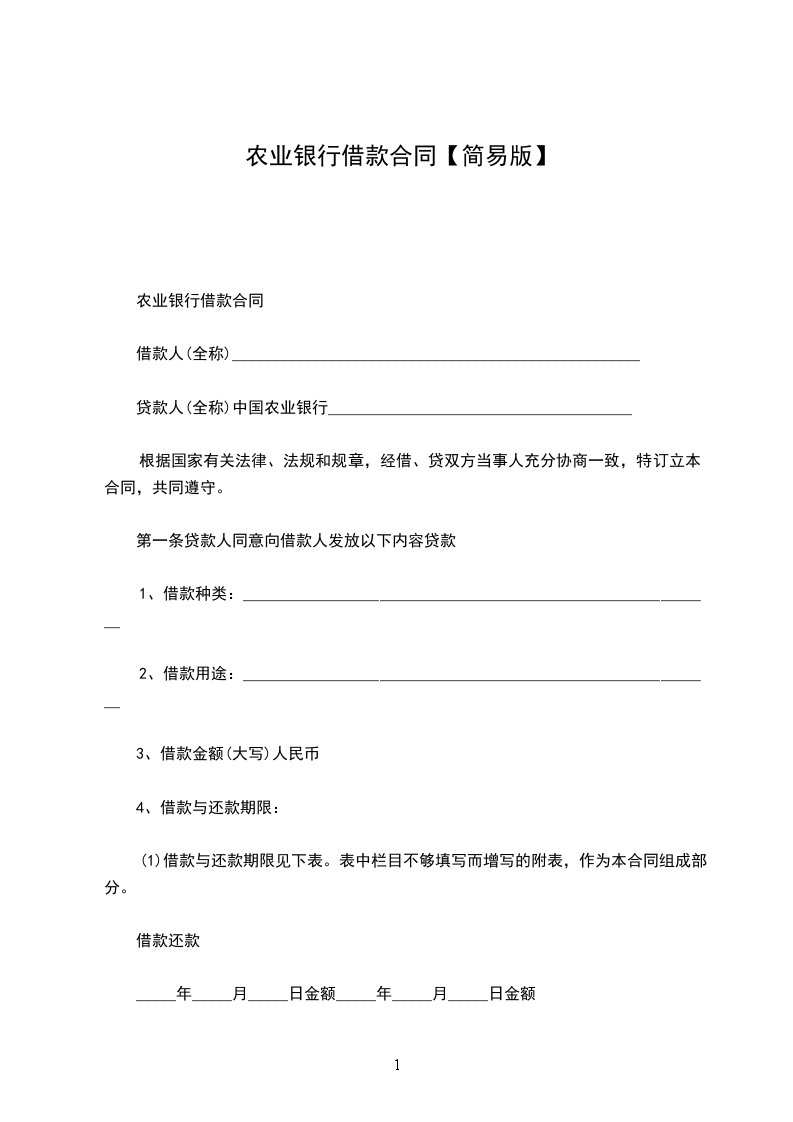 第一条 借款方向贷款方借款人民币(大写)______元,用于______。预计用款为二零________年______元;二零________年______元;二零________年______元;二零________年_______元;二零________年______元;二零________年______元;