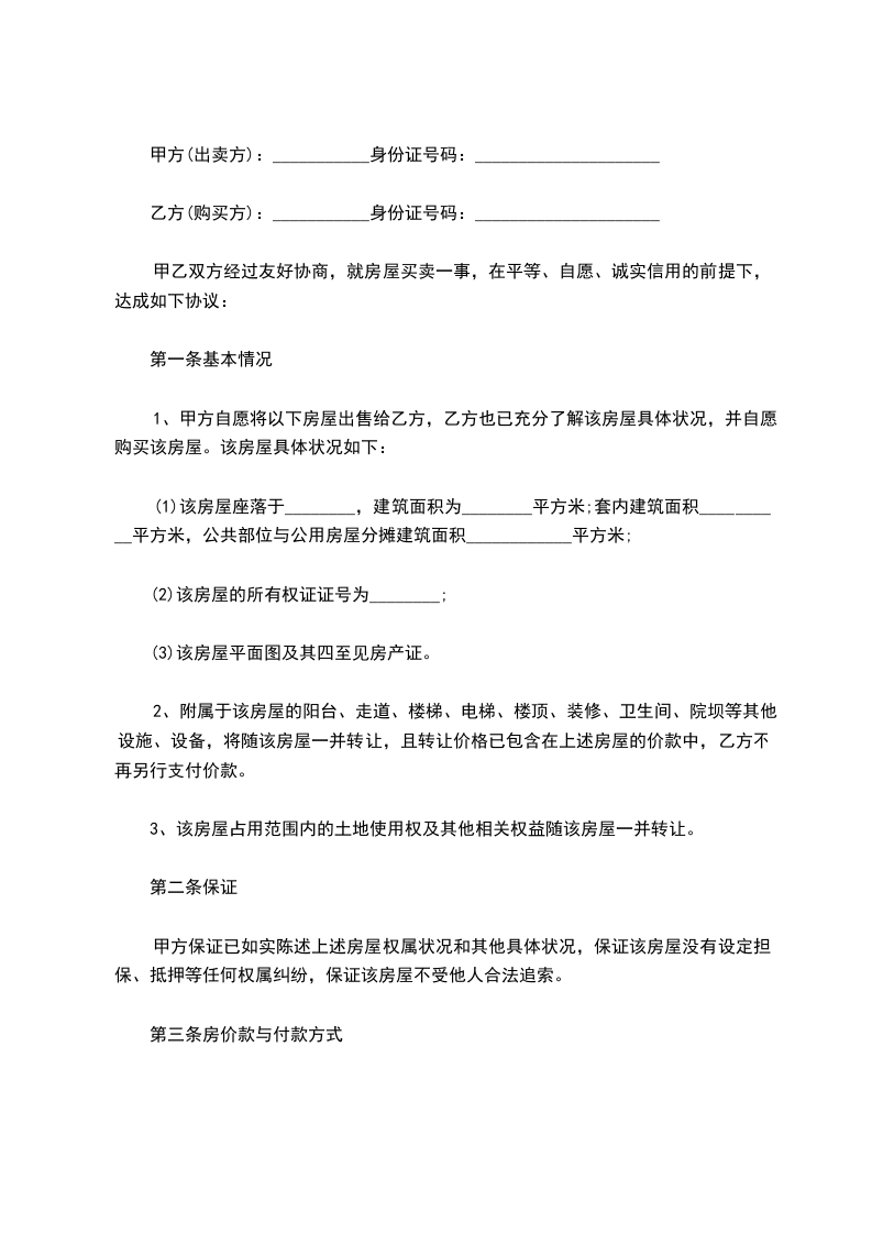 甲乙双方经过友好协商,就房屋买卖一事,在平等、自愿、诚实信用的前提下,达成如下协议: