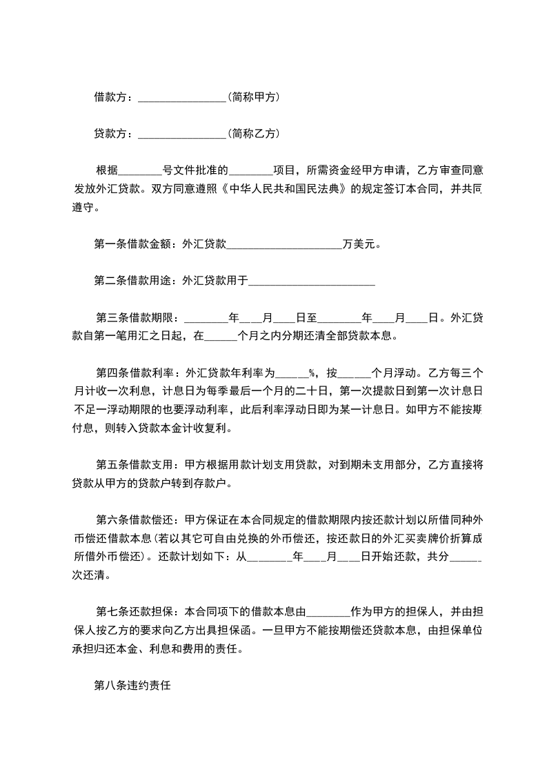 根据________号文件批准的________项目,所需资金经甲方申请,乙方审查同意发放外汇贷款。双方同意遵照《中华人民共和国民法典》的规定签订本合同,并共同遵守。