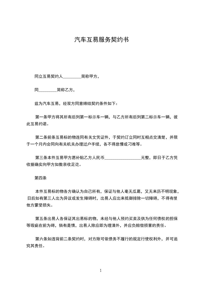 第三条 本件互易甲方愿补贴乙方人民币 _______元整即日旧乙方凭收据确实向甲方 如数亲收足讫。