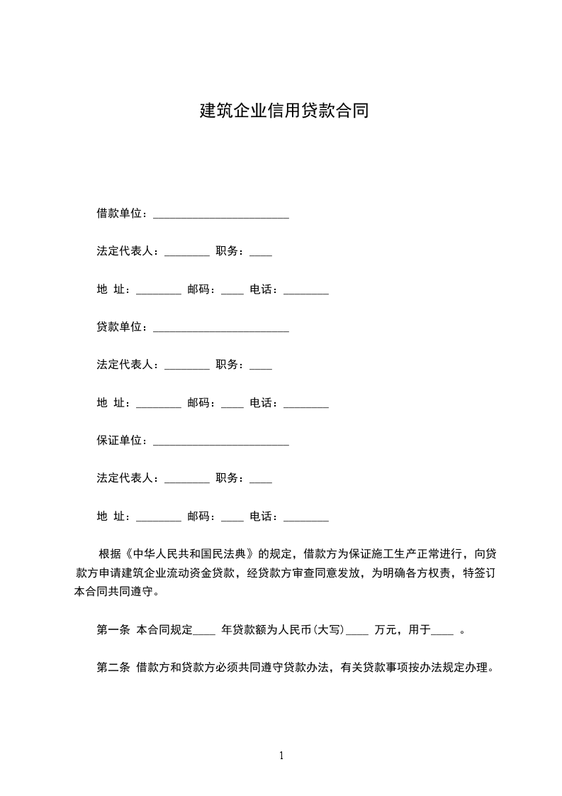 根据《中华人民共和国民法典》的规定,借款方为保证施工生产正常进行,向贷款方申请建筑企业流动资金贷款,经贷款方审查同意发放,为明确各方权责,特签订本合同共同遵守。