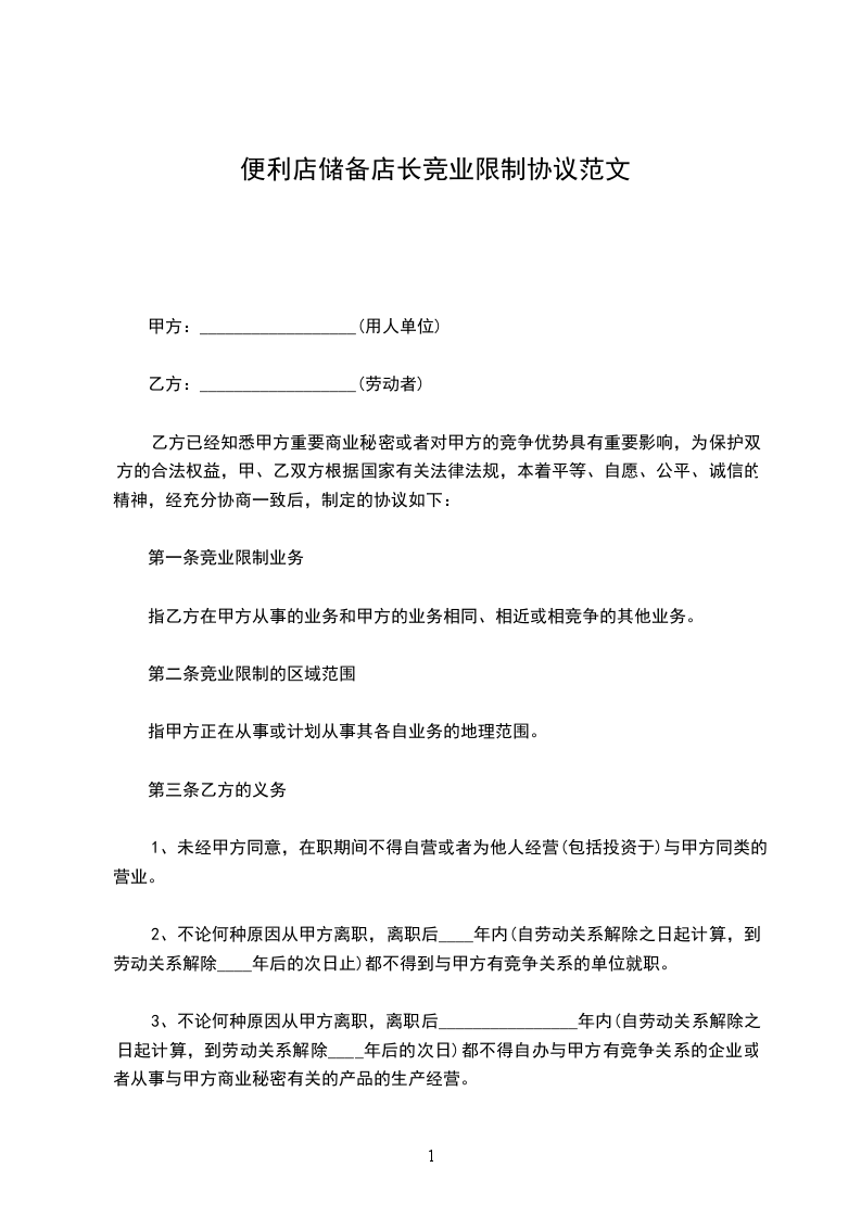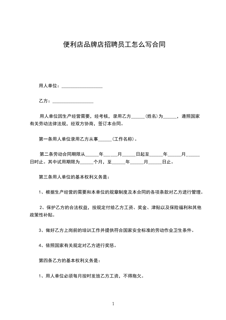 便利店储备店长招聘合同