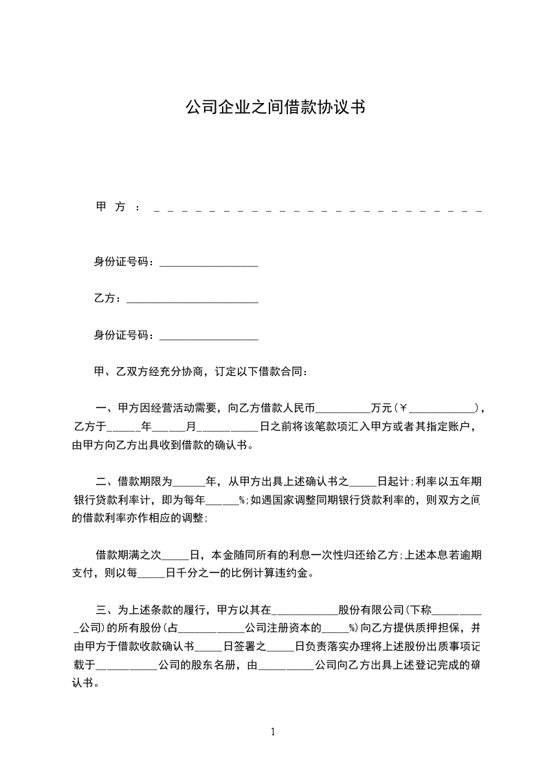 借款单位:________________________ 法定代表人:________ 职务:____ 地 址:________ 邮码:____ 电话:________