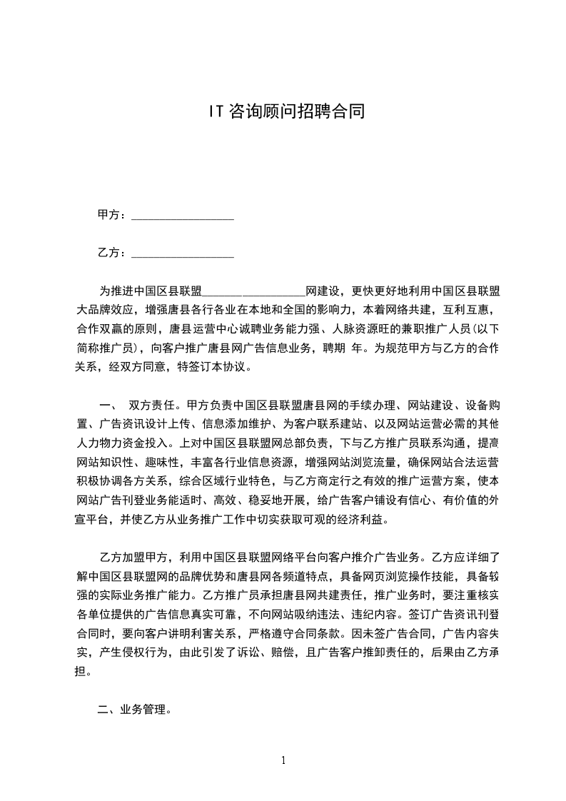 IT咨询顾问招聘合同