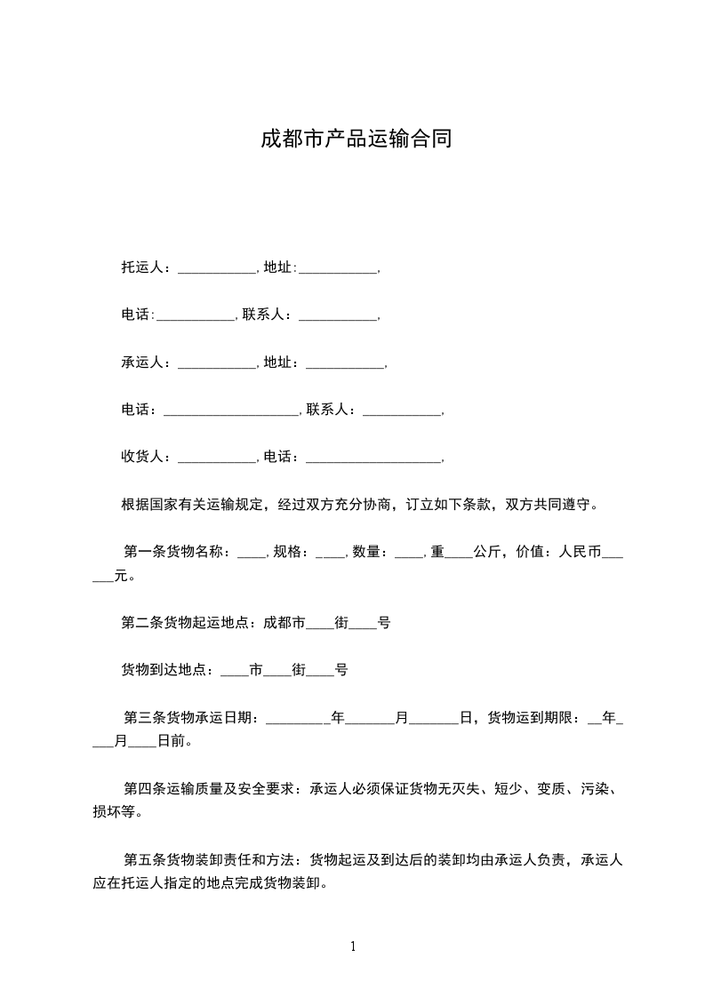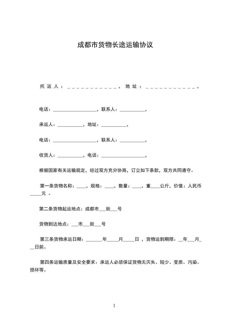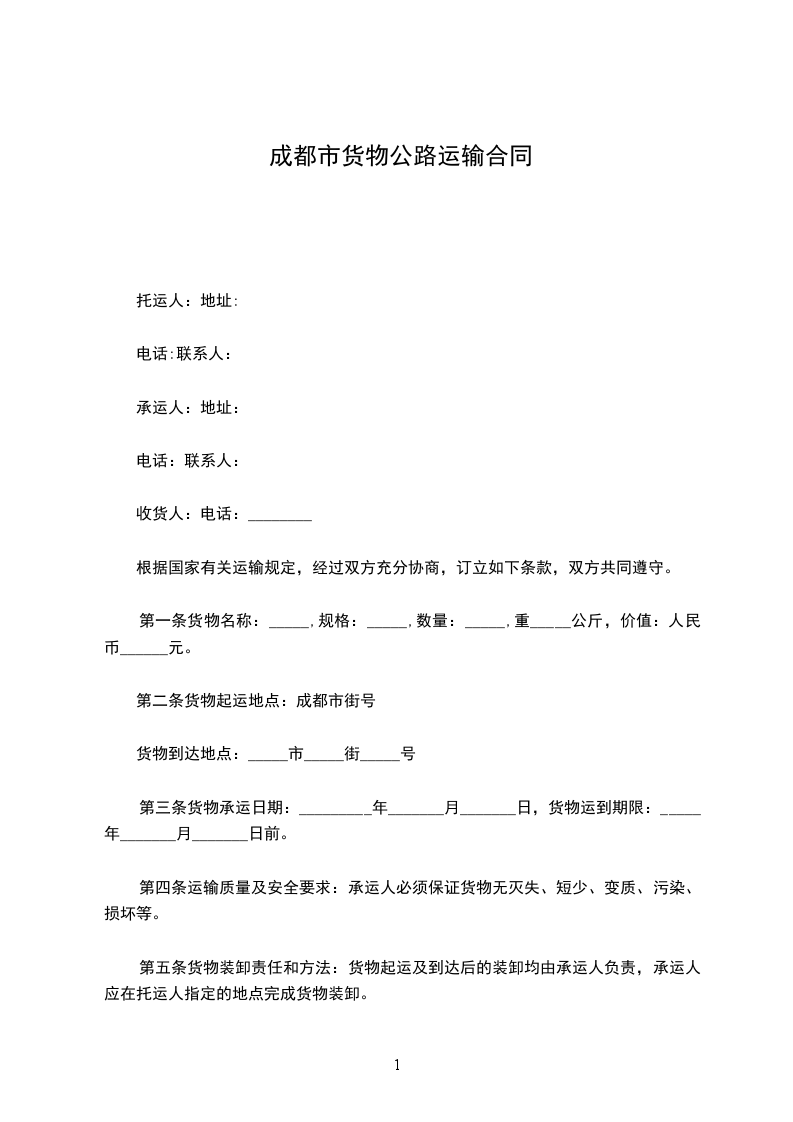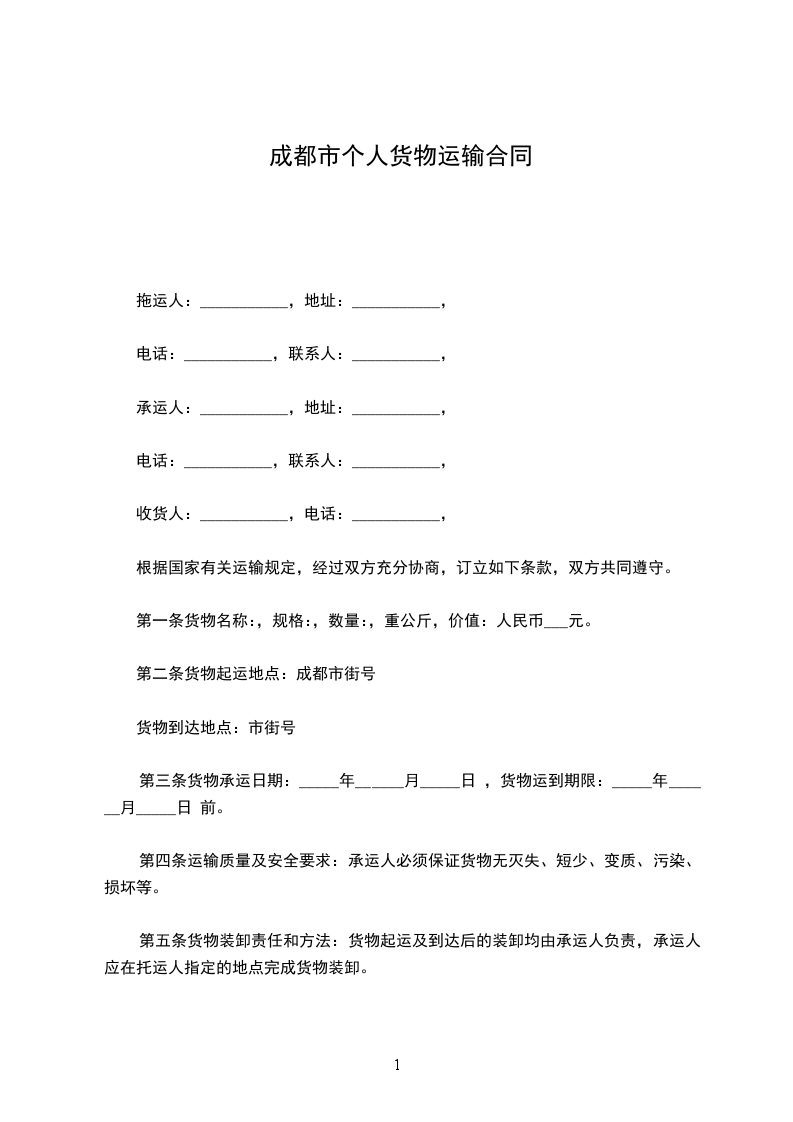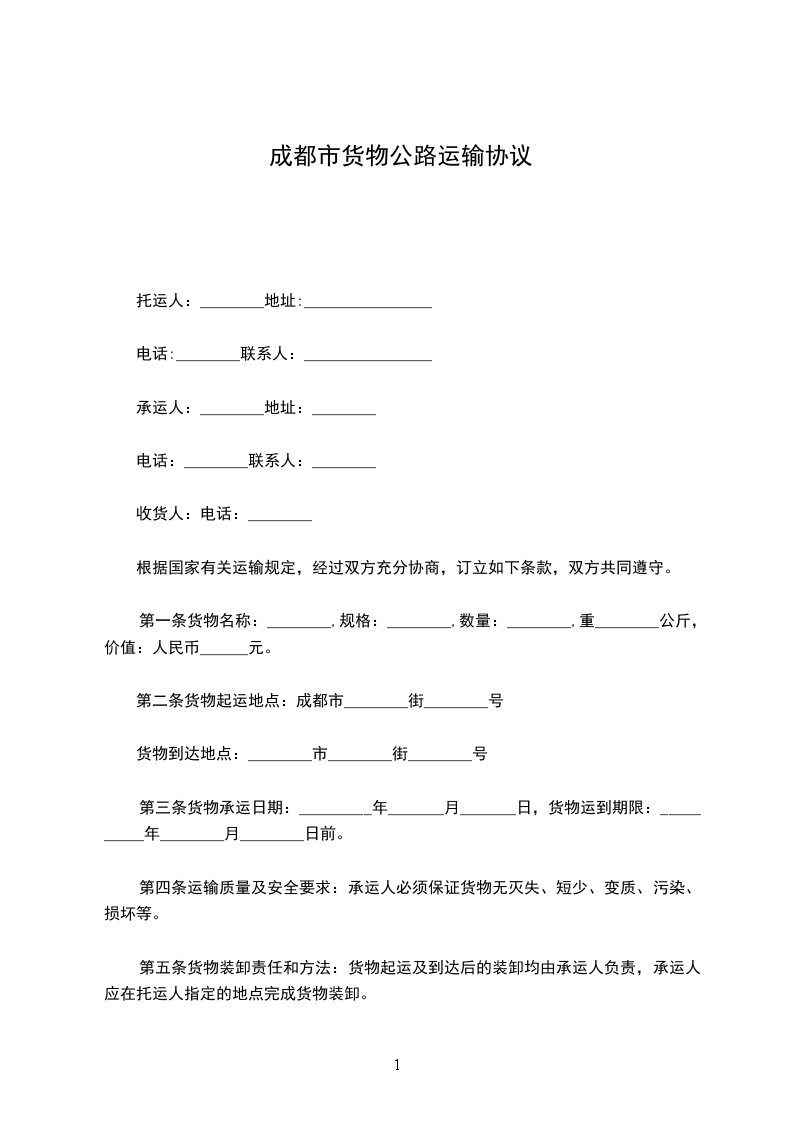 第二条 货物起运地点:成都市:_____街:_____号