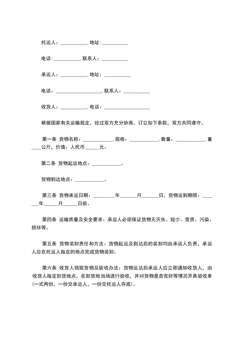 承运人:_________________, 地址:_________________,