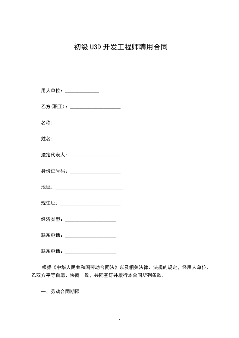 第一条 合同期限