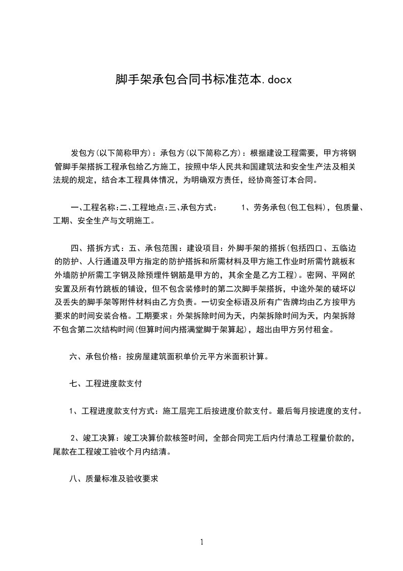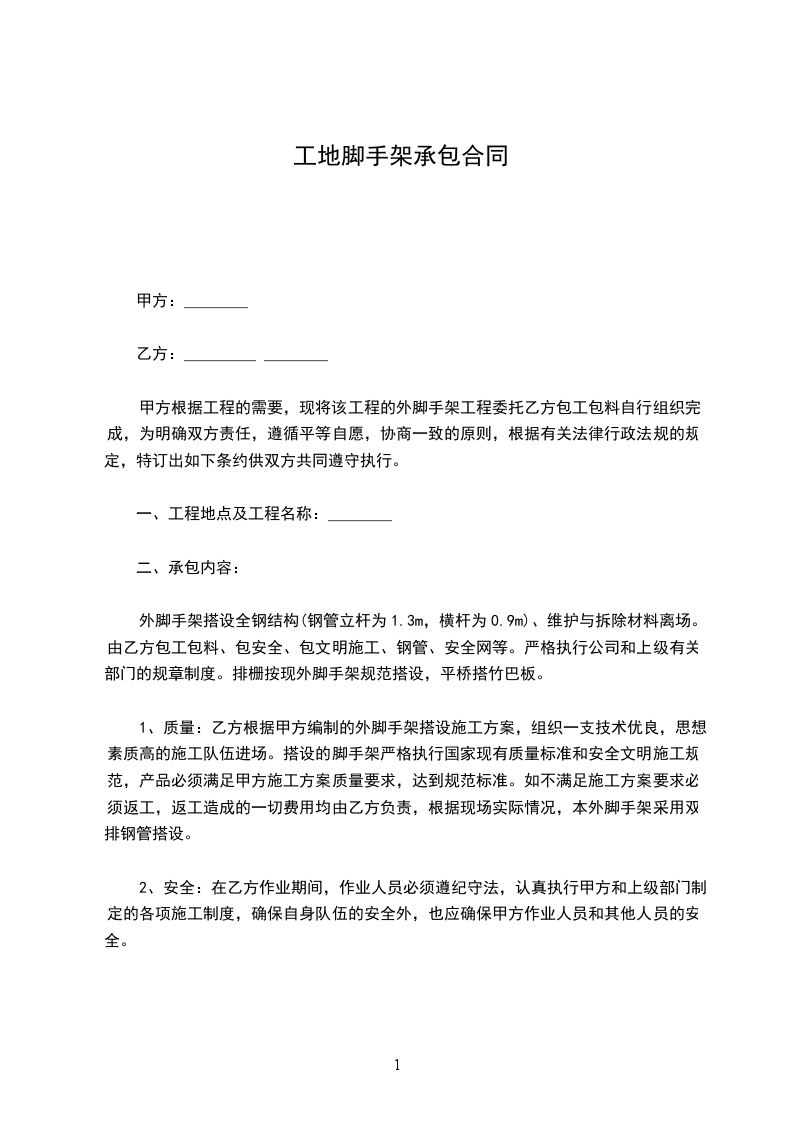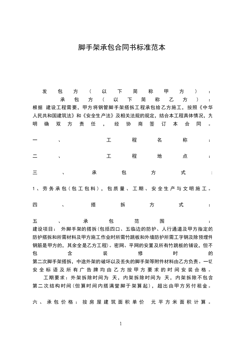 根据 建设工程需要,甲方将钢管脚手架搭拆工程承包给乙方施工,按照《中华人民共和国建筑法》和《安全生产法》及相关法规的规定,结合本工程具体情况,为明确双方责任,经协商签订本合同。