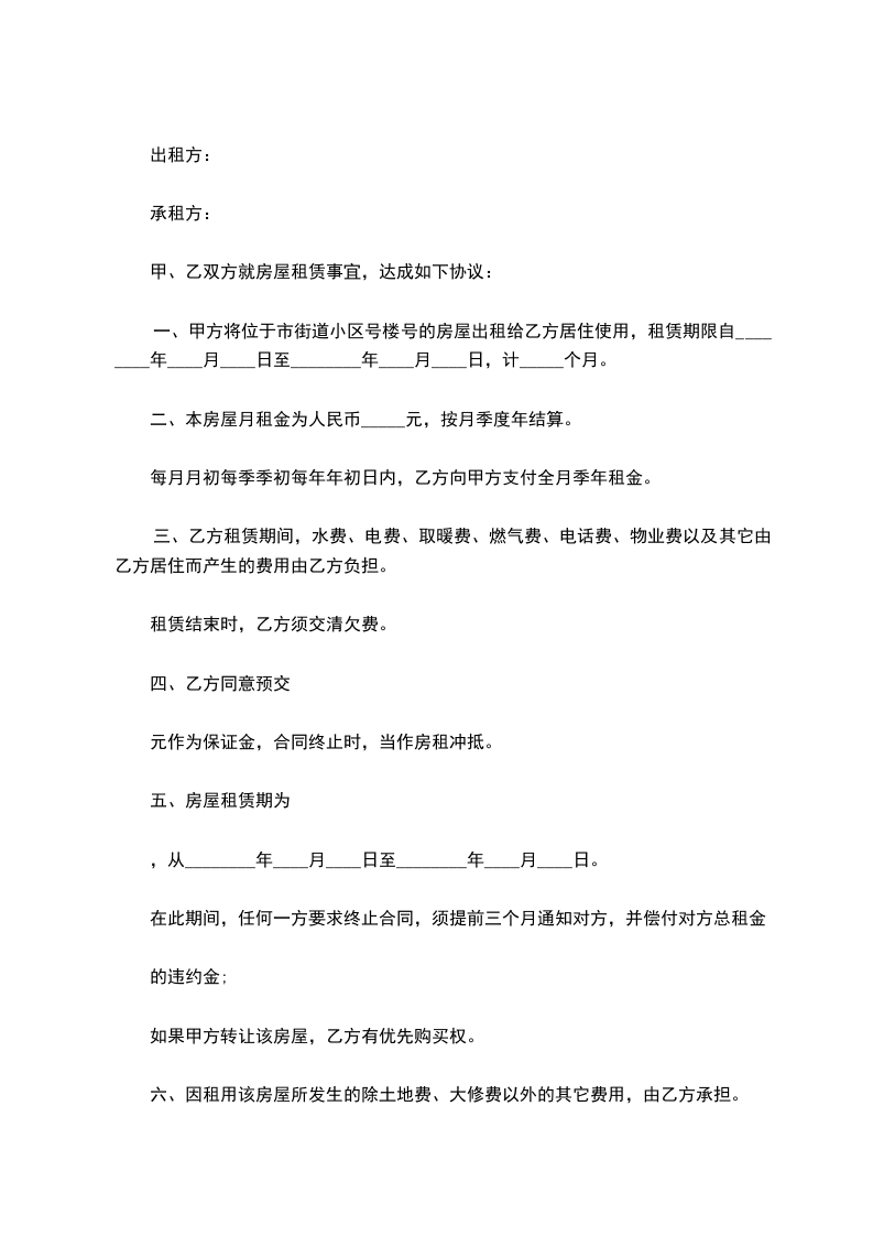 2.甲方必须按期将房产交付甲方使用,否则,每逾期一天,应向乙方偿付违约部分房产款____%的违约金。