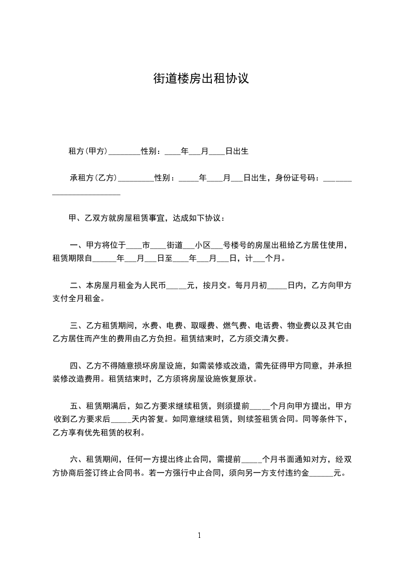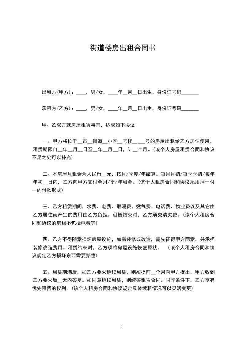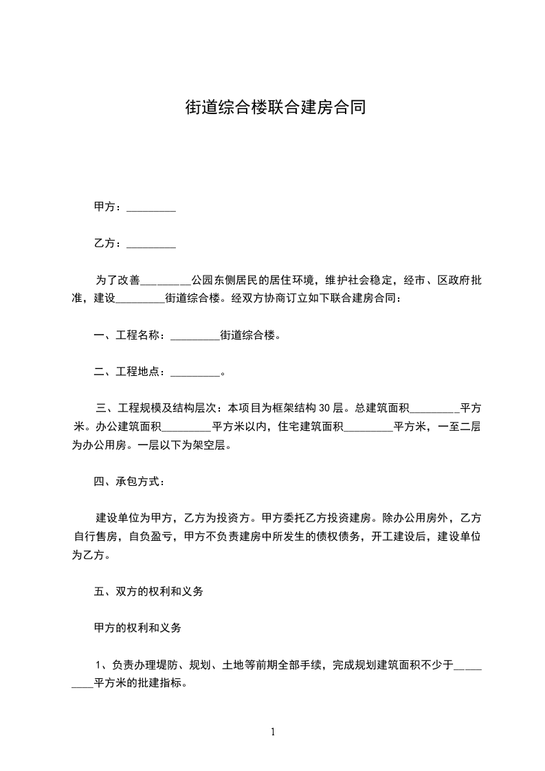 第一条 乙方购买甲方座落在____市____街____巷____号的房屋____栋____间,建筑面积为____平方米。