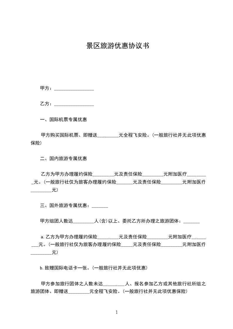 甲方参加旅行团体之人数未达_________人、报名参加乙方或其他旅行社所组之旅游团体、即赠送_________元全程飞安险。(一般旅行社并无此项优惠保险)