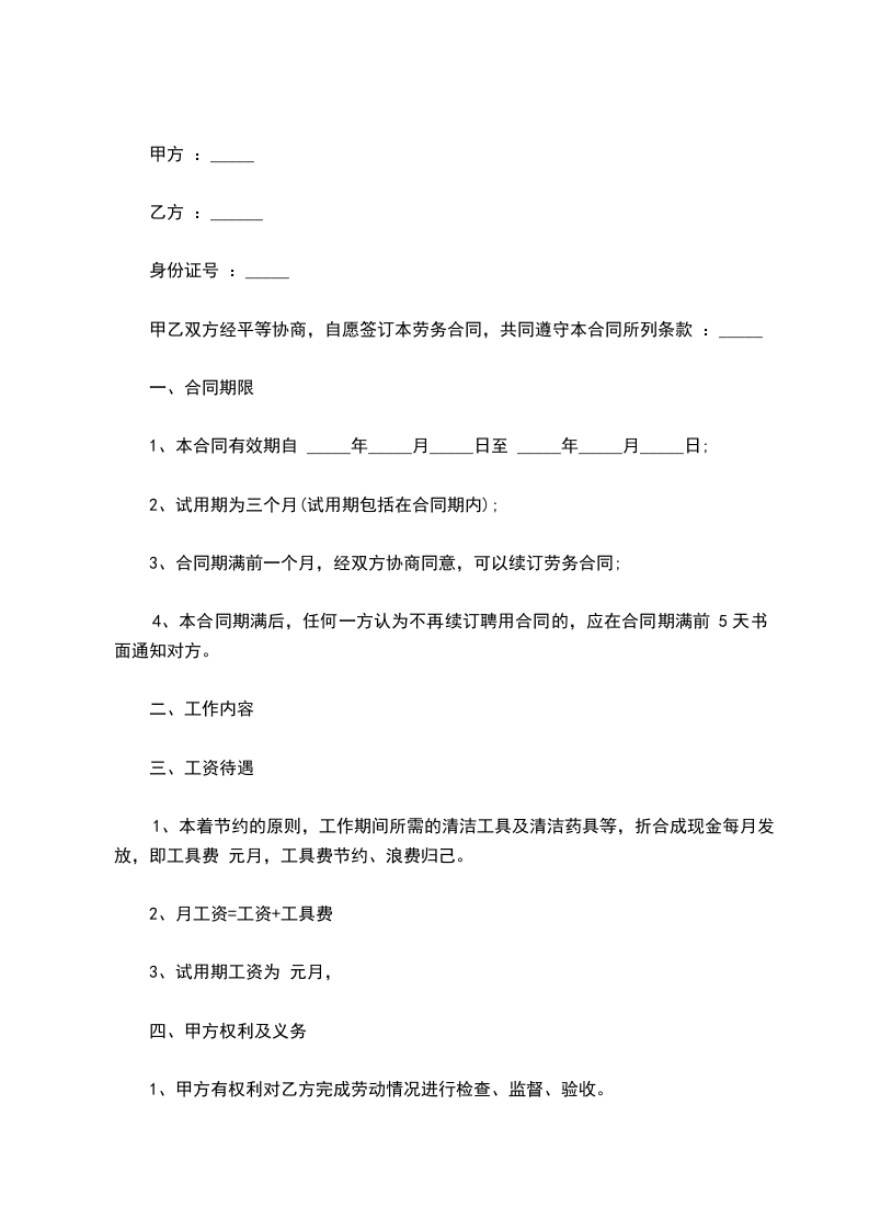 1.同意在甲方指定地点从事清洁工作,遵守指定地点的规章制度和作息时间,以认真负责的态度作好清洁工作。