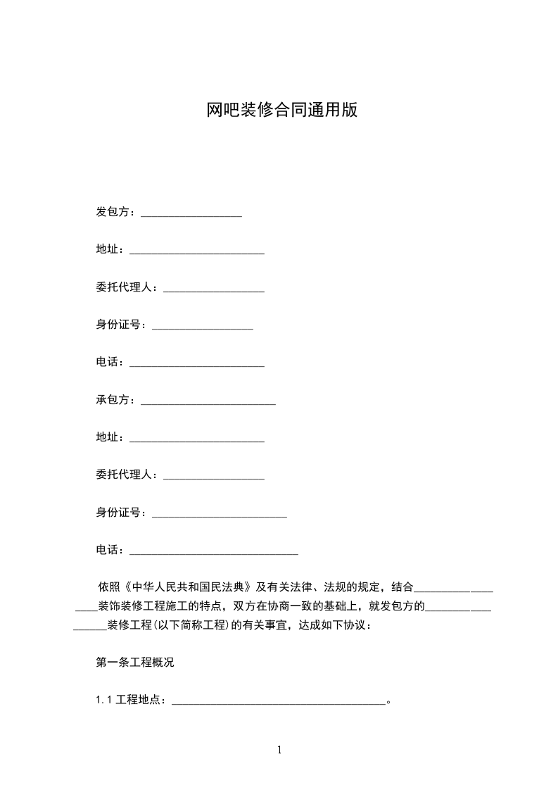 鉴于甲方系发包方,乙方系承揽方, _____年_____月__________日甲自愿将位于 _________________________承揽给乙方装修,现甲、乙双方本着平等自愿,协商一致的原则,就房屋装修有关方面,特此订立如下协议: