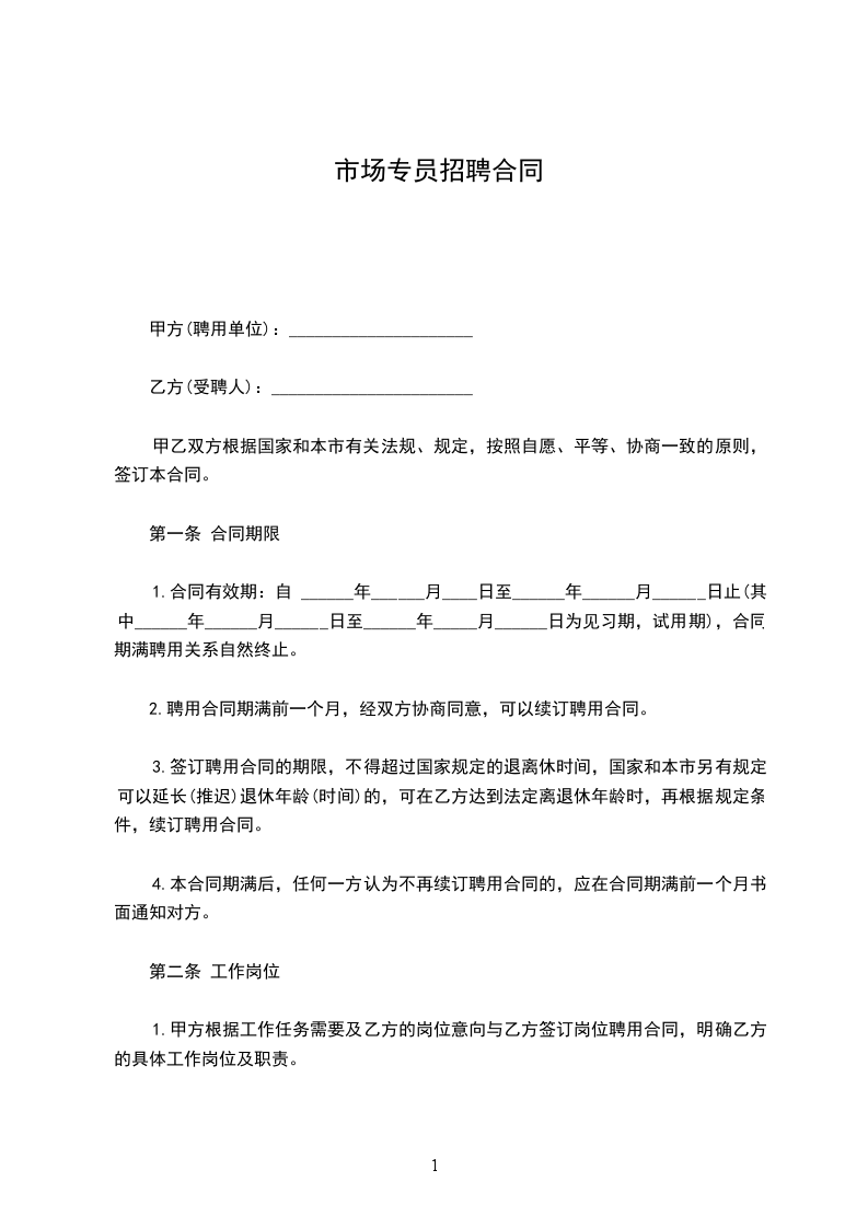 市场专员招聘合同