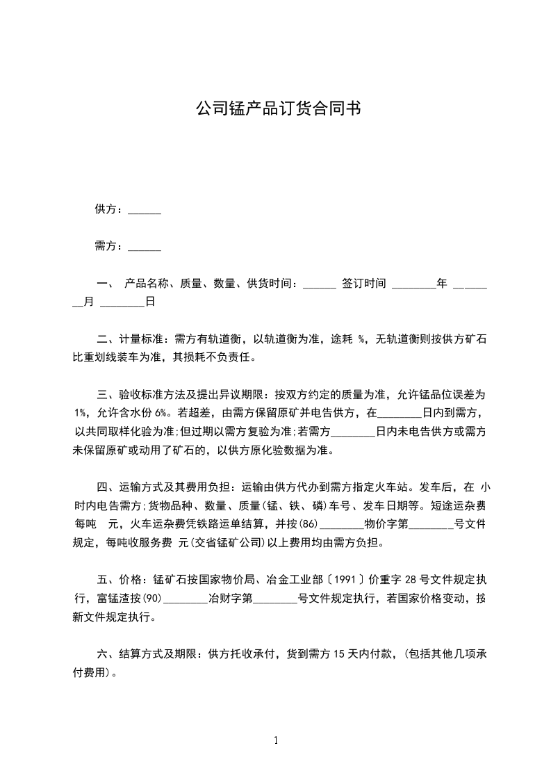 一、甲方计划______年______月向乙方订货总值为人民币______万元 。其产品名称、规格、质量(技术指标)、单价等由甲方负责制定。