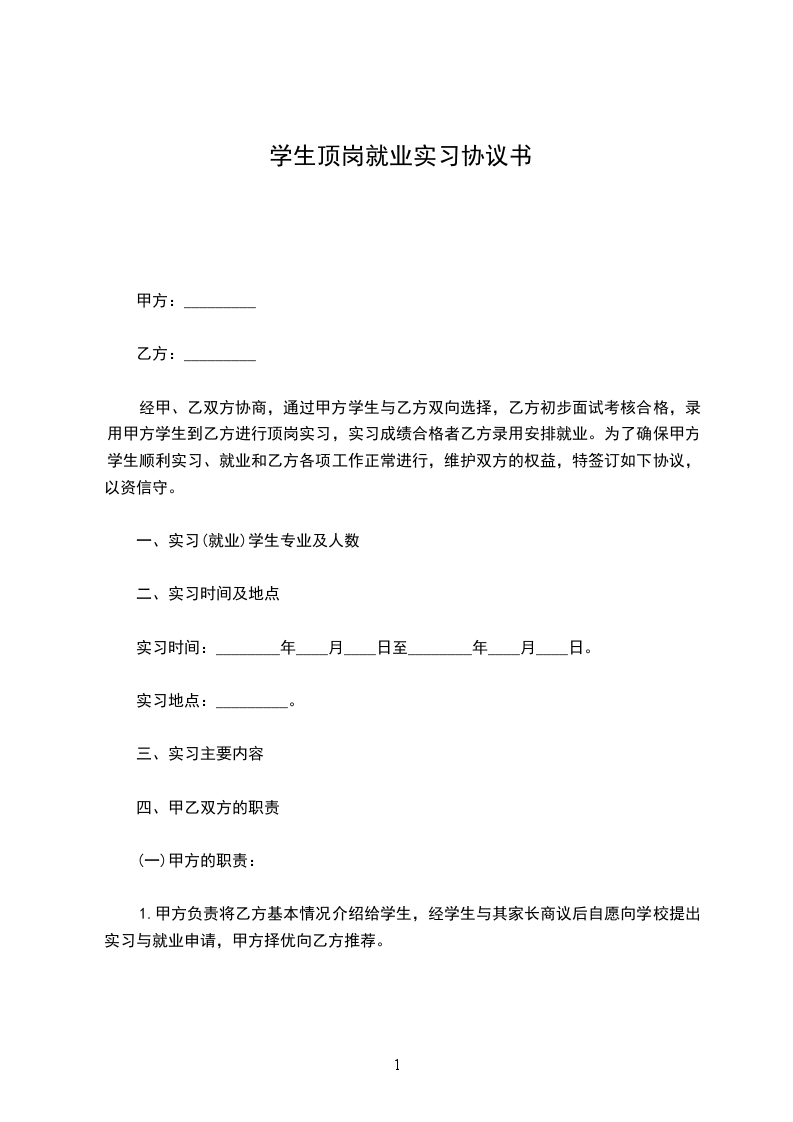 七、本协议一式三份,甲方就业、实习主管部门各一份,乙方一份。