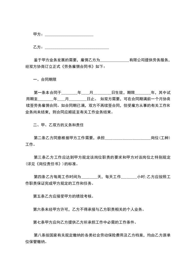 1、甲乙双方协商确定,甲方每月______日支付______元劳务费给乙方。