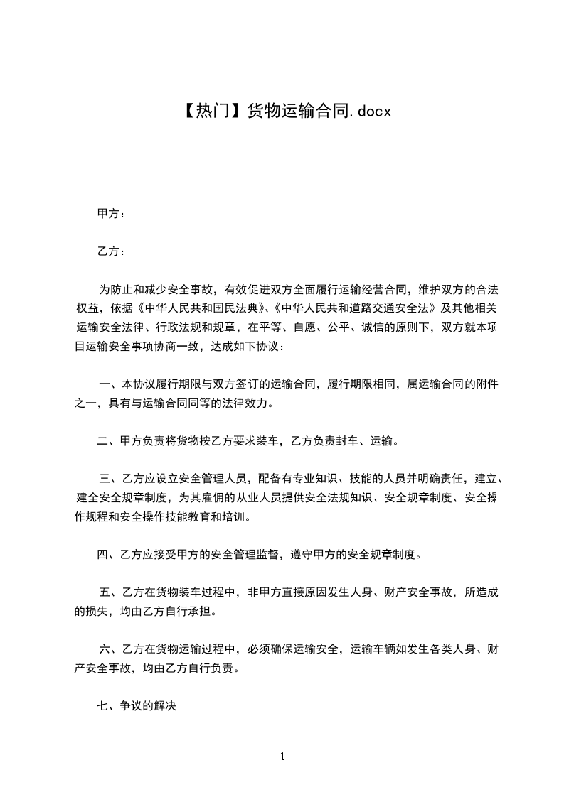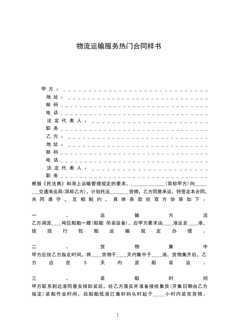 根据《民法典》和海上运输管理规定的要求,_____________(简称甲方)向________交通海运局(简称乙方),计划托运________货物,乙方同意承运,特签定本合同,共同遵守,互相制约,具体条款经双方协商如下: