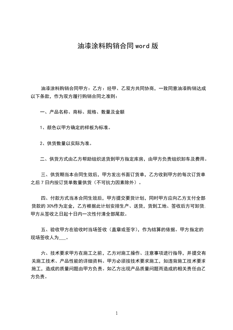 1. 常规产品由乙方直接供货,非常规产品需要提前预定,并由甲方支付30%的预定款。