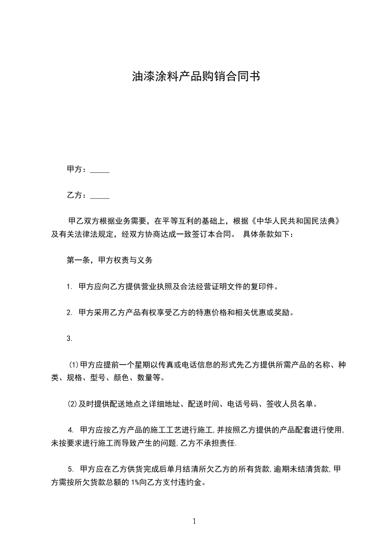 5. 甲方应在乙方供货完成后单月结清所欠乙方的所有货款,逾期未结清货款,甲方需按所欠货款总额的1%向乙方支付违约金。