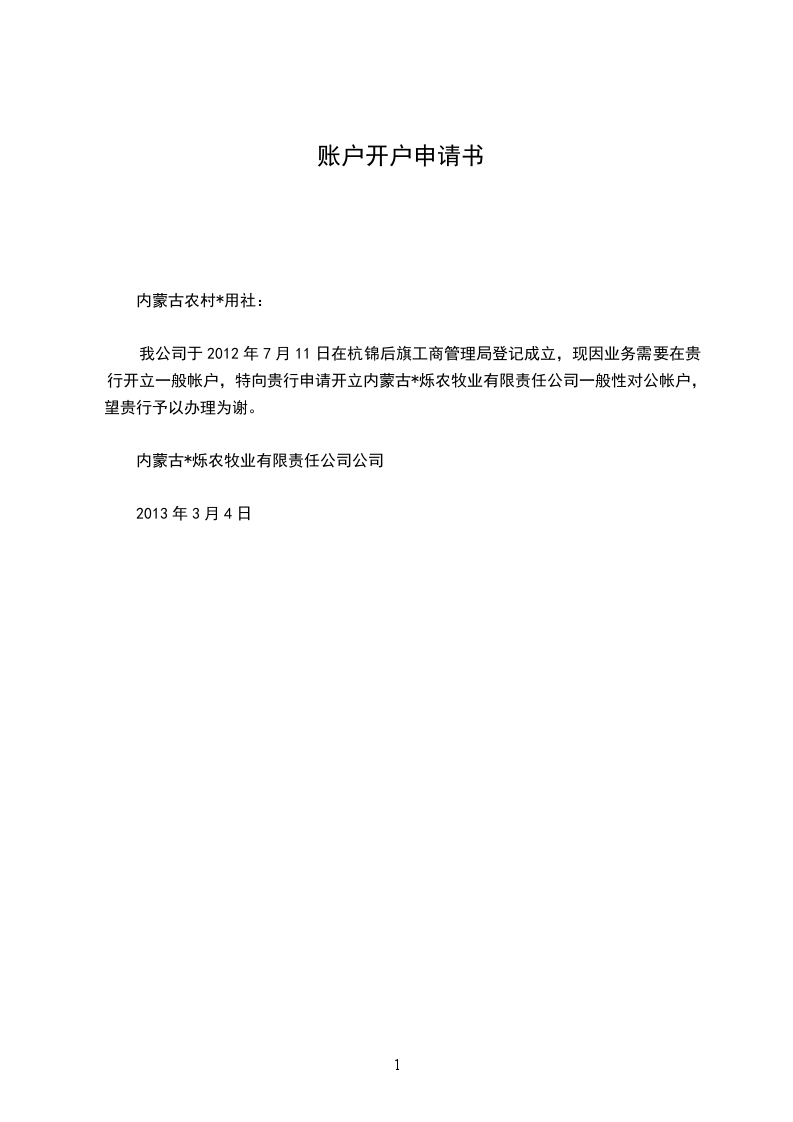 我公司于2024年7月11日在杭锦后旗工商管理局登记成立,现因业务需要在贵行开立一般账户,特向贵行申请开立内蒙古*烁农牧业有限责任公司一般性对公账户,望贵行予以办理为谢。
