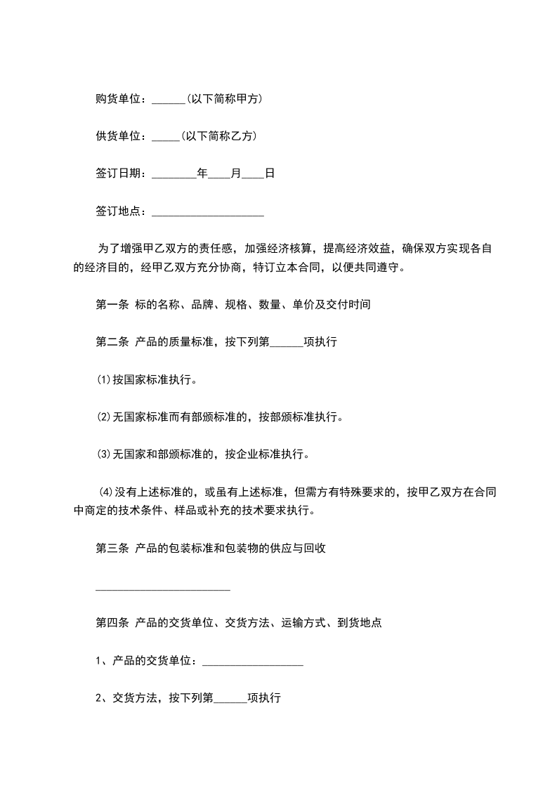 购货单位(甲方):__________ 供货单位:(乙方):_________