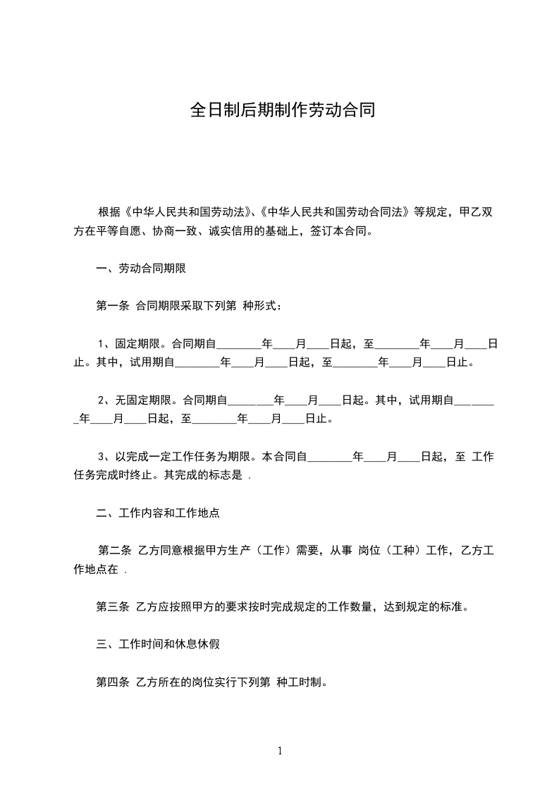 1、固定期限。合同期自________年____月____日起,至________年____月____日止。其中,试用期自________年____月____日起,至________年____月____日止。