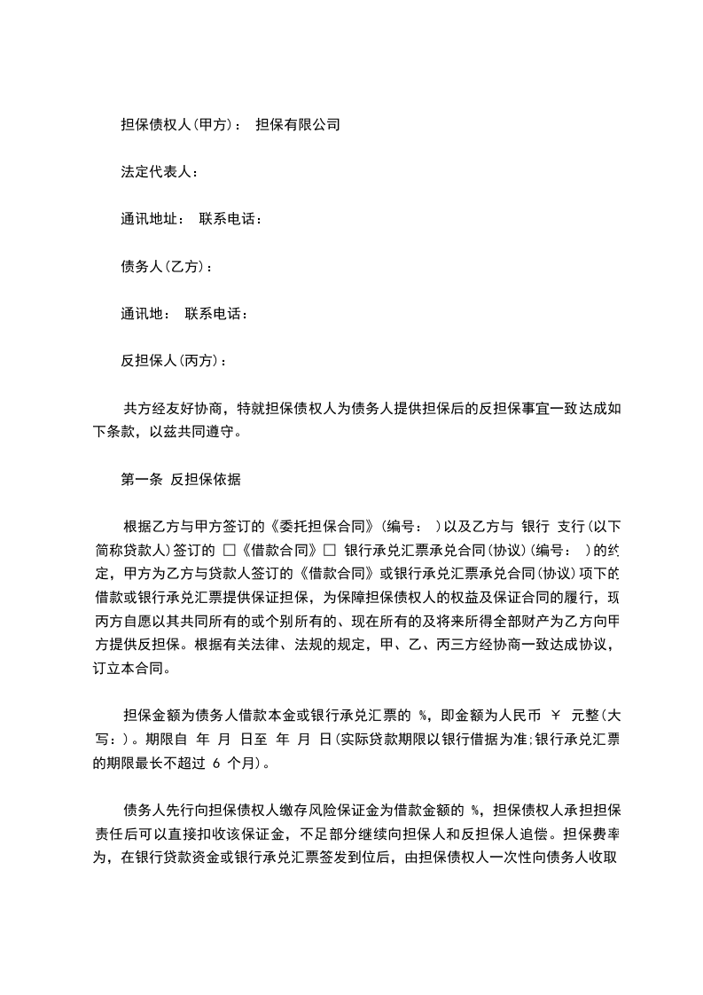 2、本条 约定反担保措施,由乙方与反担保人另行签订反担保合同,抵押或者质押反担保合同依法需登记生效的,应依法办理登记。