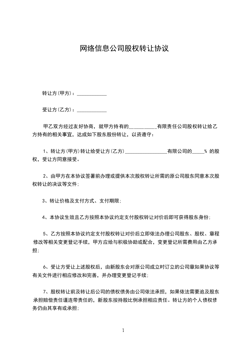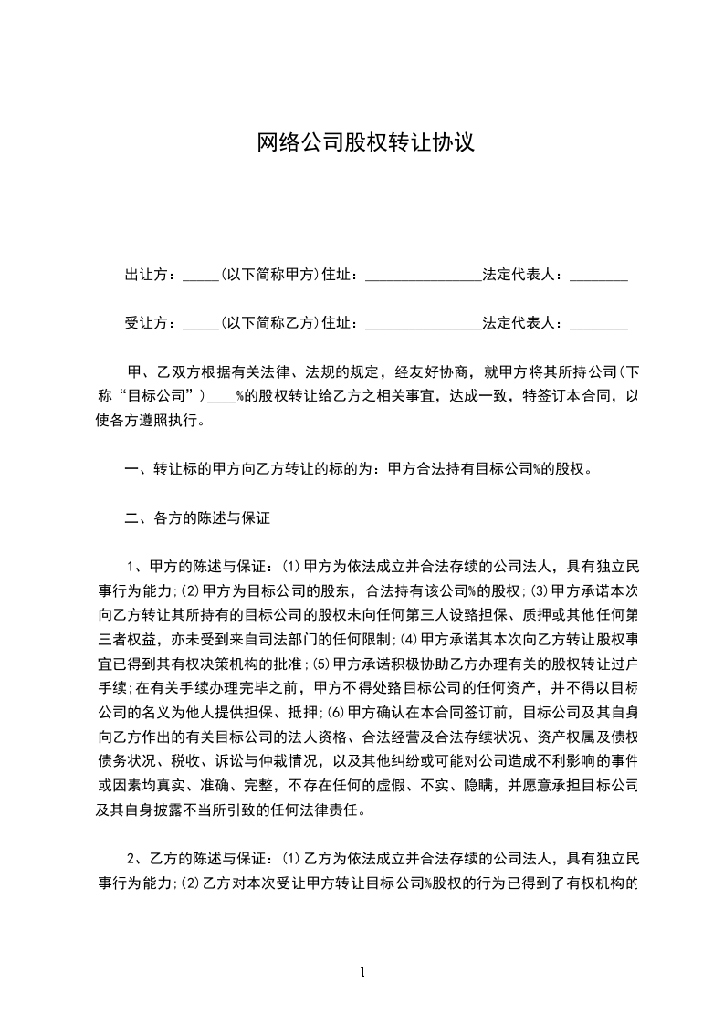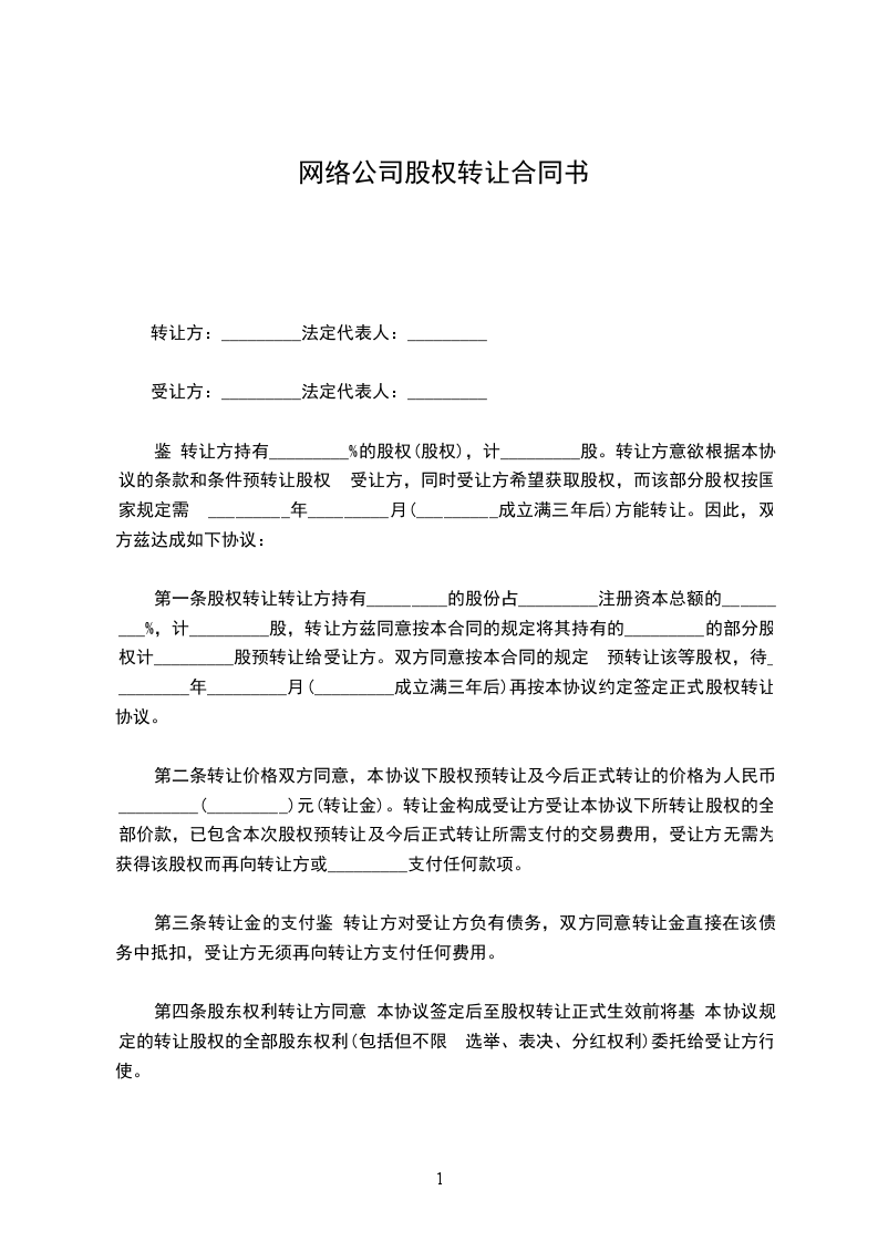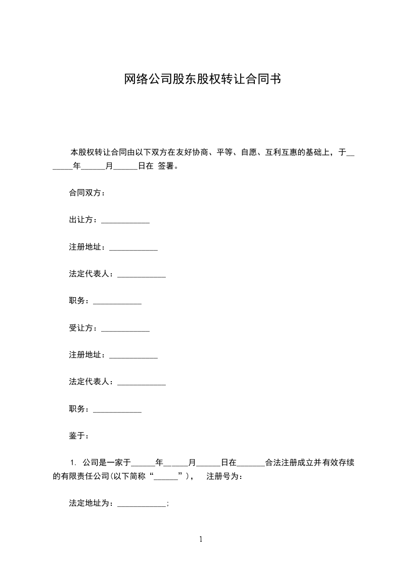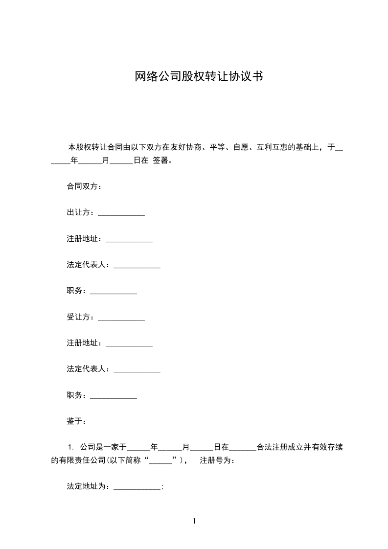 3. 现出让方与受让方经友好协商,在平等、自愿、互利互惠的基础上,一致同意出让方将其所拥有的______的______%的股权转让给受让方,而签署本《股权转让合同》。