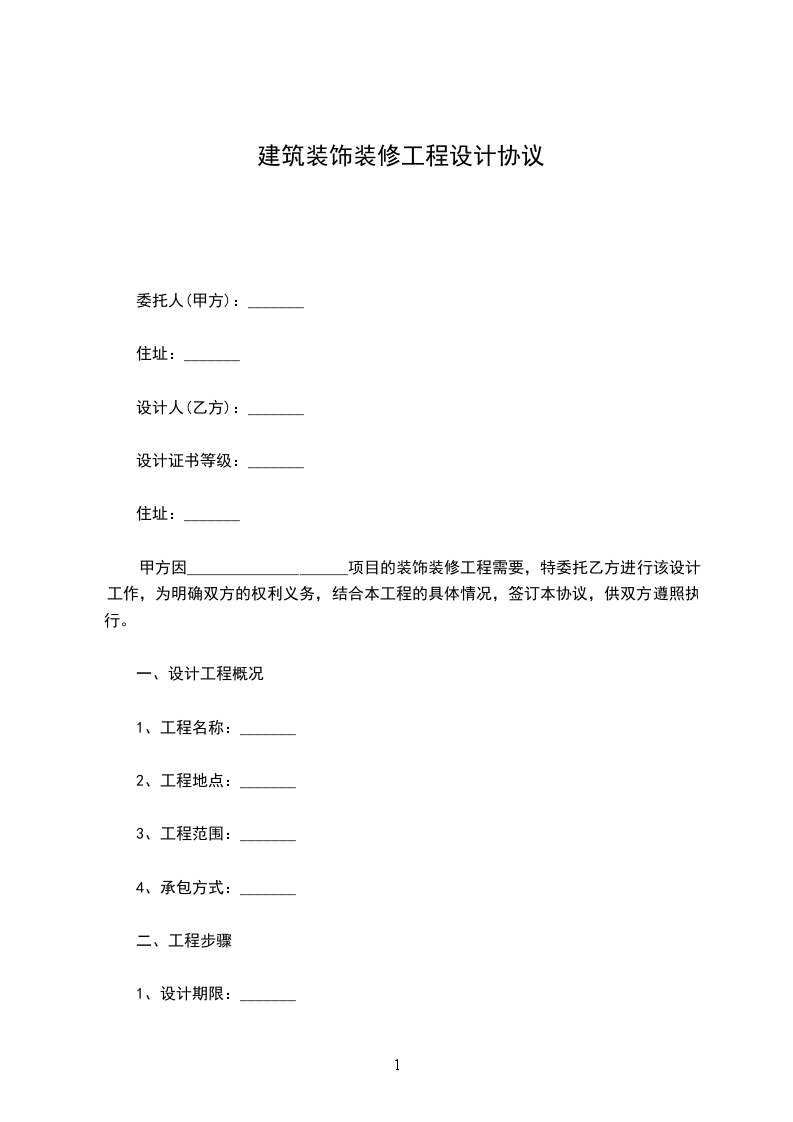 甲方因____________________项目的装饰装修工程需要,特委托乙方进行该设计工作,为明确双方的权利义务,结合本工程的具体情况,签订本协议,供双方遵照执行。