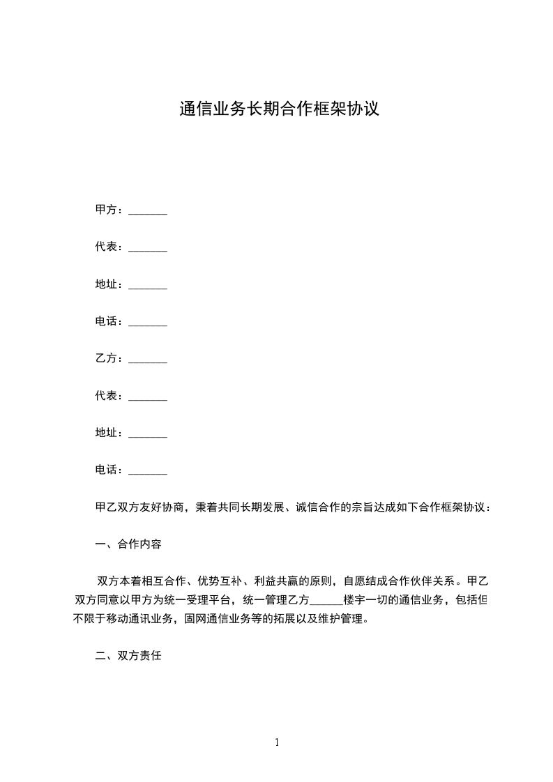 双方本着相互合作、优势互补、利益共赢的原则,自愿结成合作伙伴关系。甲乙双方同意以甲方为统一受理平台,统一管理乙方______楼宇一切的通信业务,包括但不限于移动通讯业务,固网通信业务等的拓展以及维护管理。