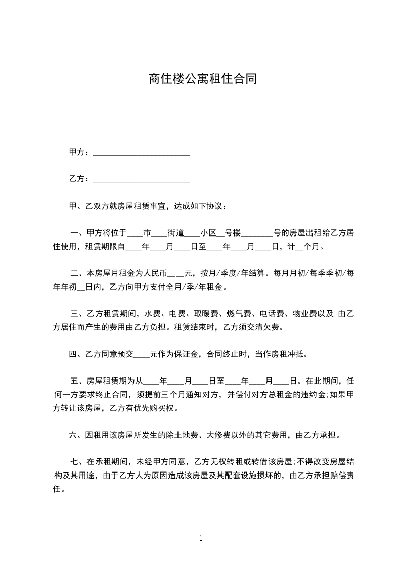 乙方对承租的公寓和设备有爱护保管的责任。由于使用不当造成的损失或损坏要负责修复或赔偿。乙方应遵守《住户须知》(另发)中的规定。乙方对公寓住房结构或装置设备的自然损耗不负赔偿责任。