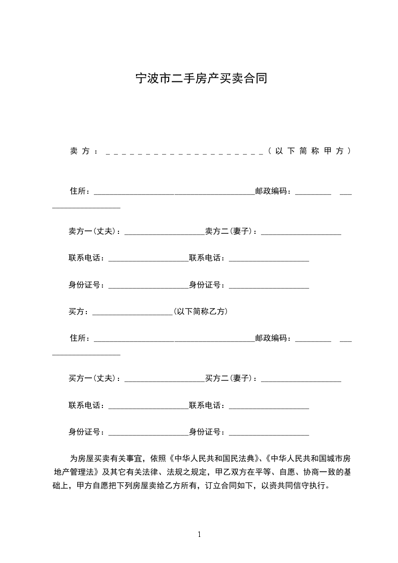 买方一(丈夫):____________________买方二(妻子):____________________