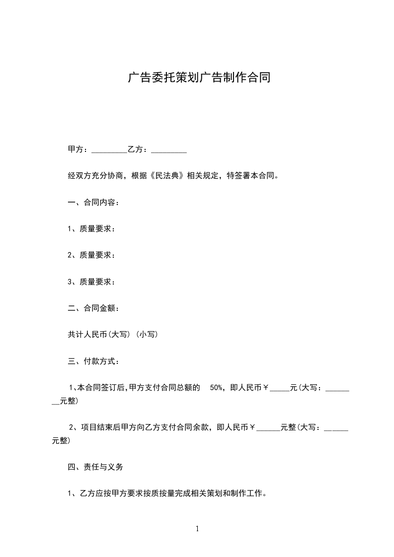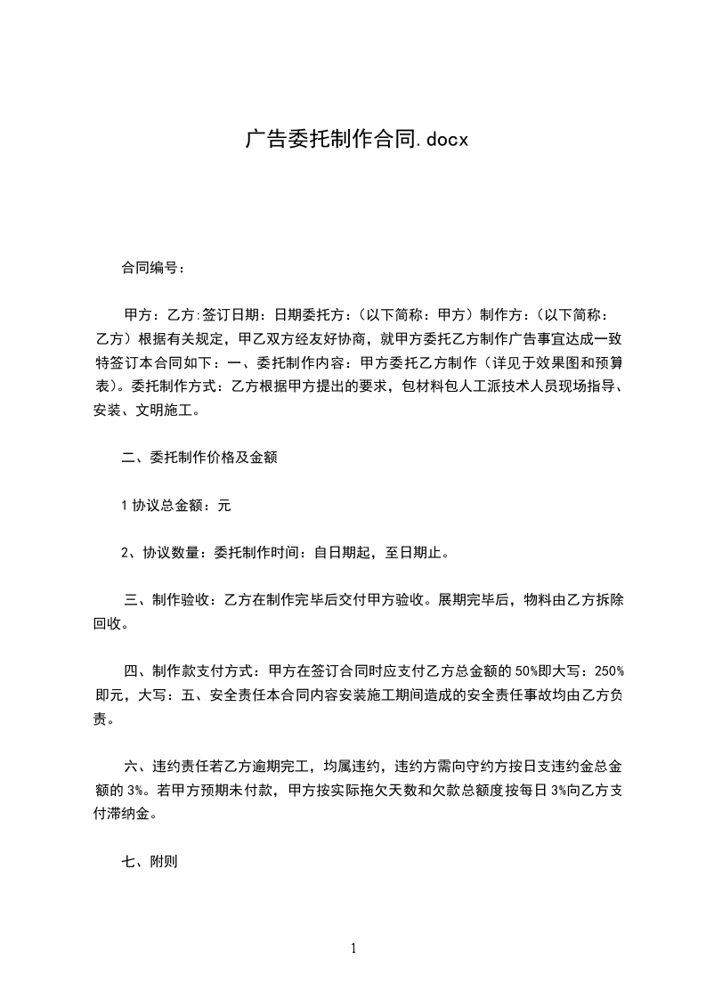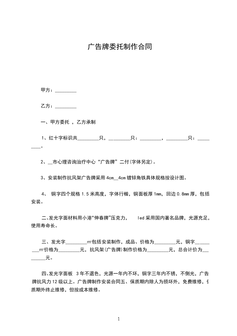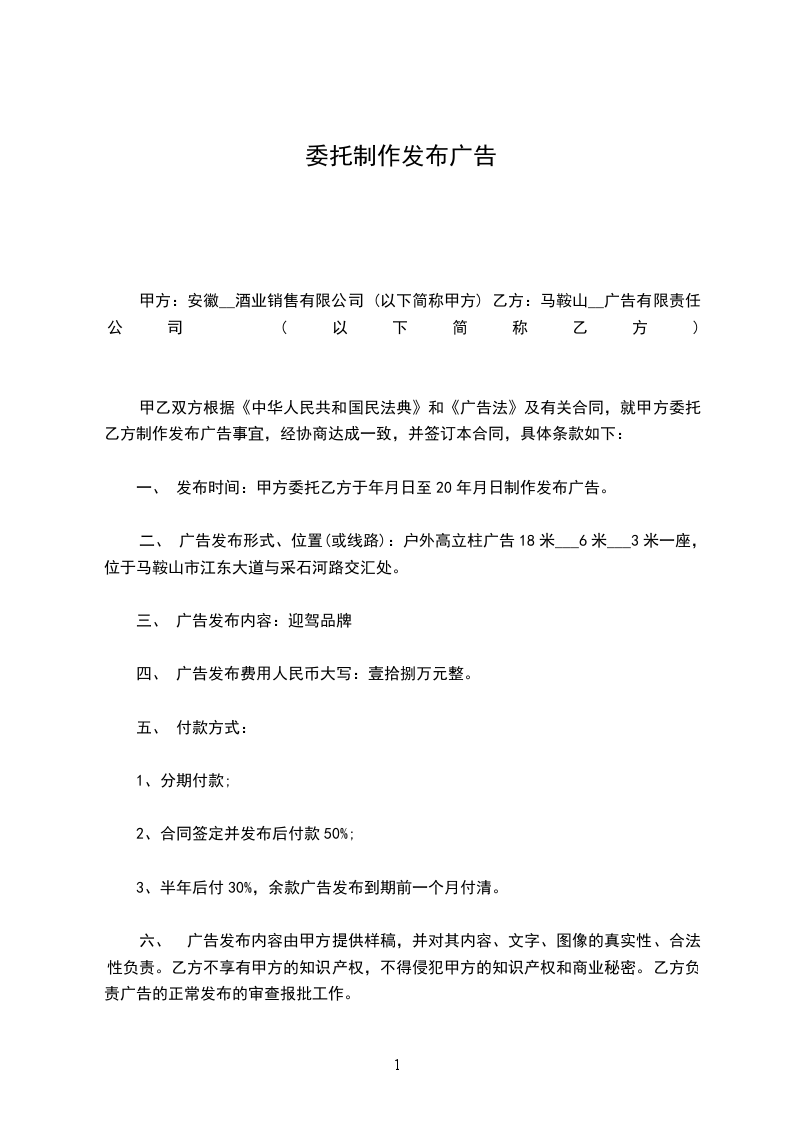 1、经过甲方前期实地考察和双方谈判,甲方选第乙方为其广告制作合作伙伴。