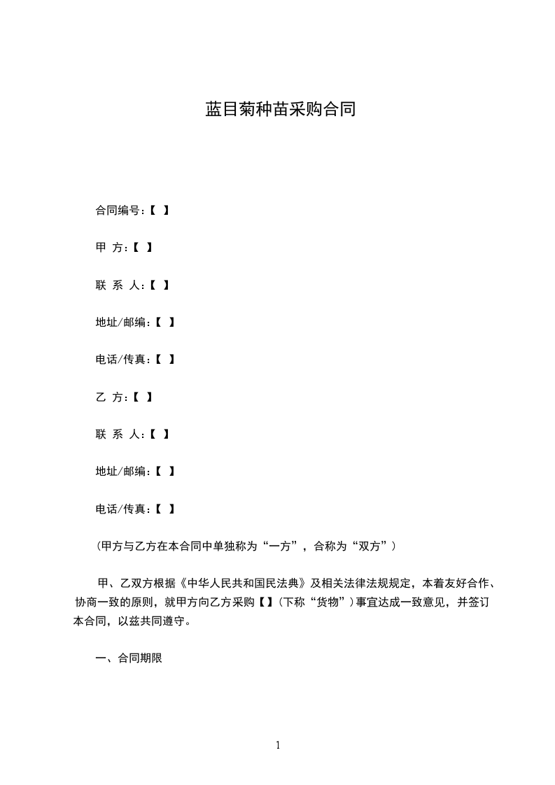 甲、乙双方根据《中华人民共和国民法典》及相关法律法规规定,本着友好合作、协商一致的原则,就甲方向乙方采购【】(下称“货物”)事宜达成一致意见,并签订本合同,以兹共同遵守。