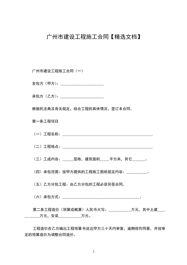 1、工程总造价:大写:______¥:_______